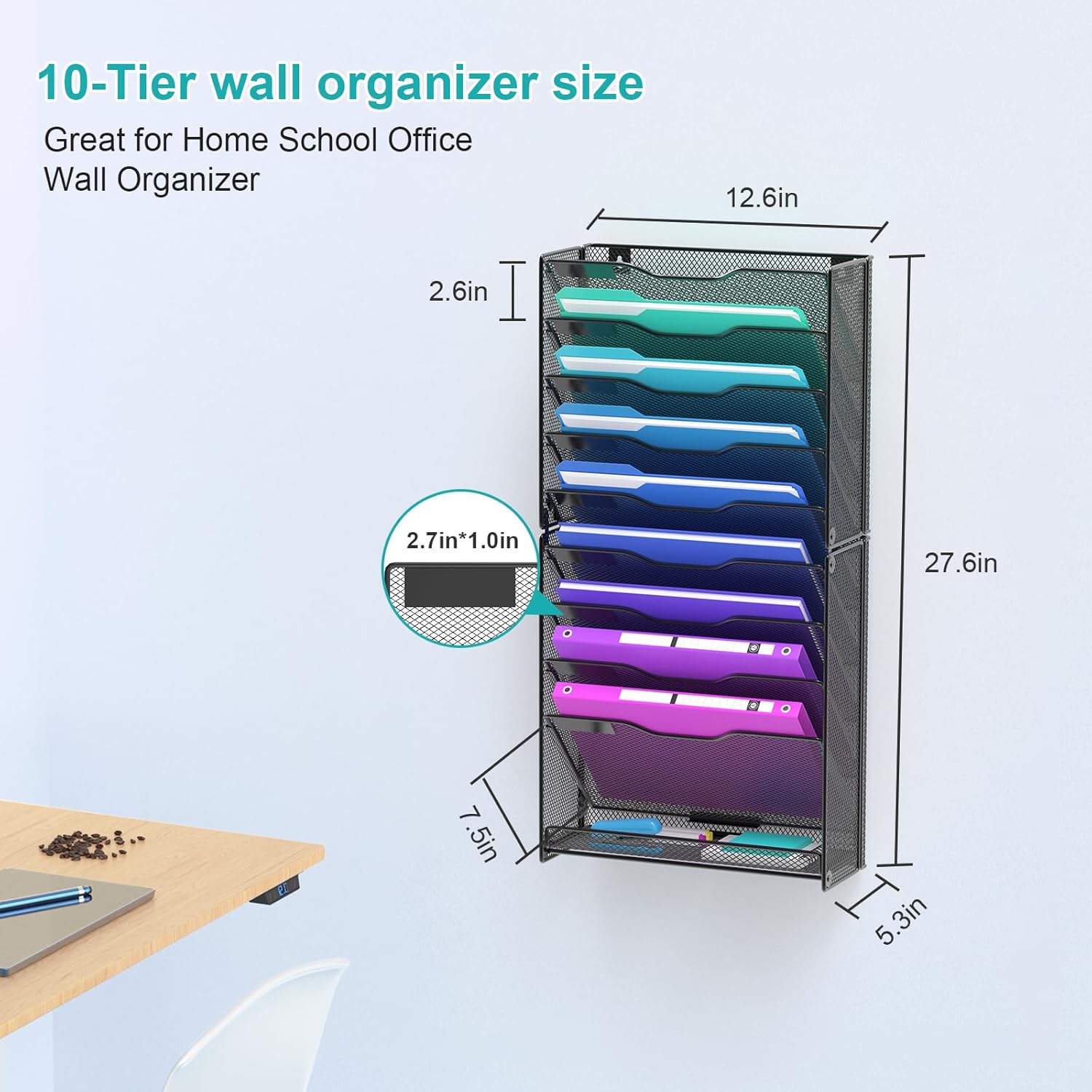 - VERTICAL STORAGE SPACE: 10-layer wall organizer can make full use of the vertical storage space, make the desktop more clean and tidy, categorize and organize diversified items, improve office efficiency.