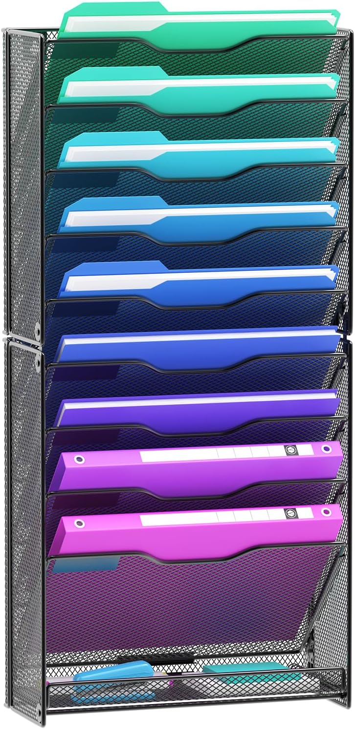 - Color : Black Wall File Organizer - 10 Tier