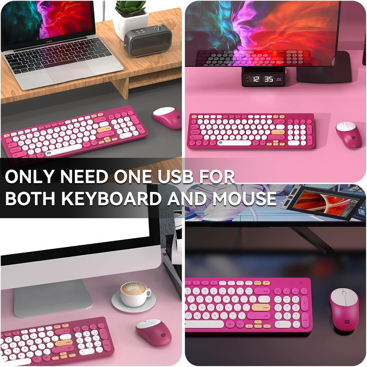 - ☆ Cute Wireless Keyboard Universal Compatibility: Our keyboard and mouse combo is compatible with various operating systems, including Windows 2000/ME/XP (*64)/Vista/7/8/10, Mac OS X (V10.4 above), and Android. It works seamlessly with a wide range of devices such as Macbooks, desktops, Chromebooks, PCs, laptops, computers, smart TVs, and more. Please note that this set uses a USB connection and is not compatible with devices that only have Type C ports. An adapter is required for such devices.