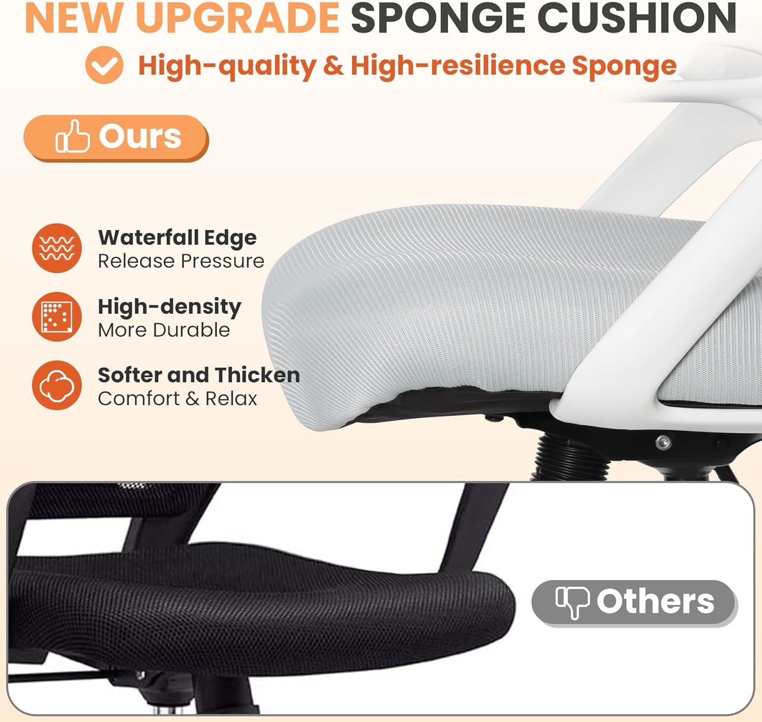 - THICKEN SEAT & SKIN-FRIENDLY FABRIC: Our drafting stools are made of softer and thicken foam to bring you more comfortable sitting experience. High resilience and high density sponge is durable and not easy to deform for long-time use. While skin-friendly mesh avoid any unpleasant rough feeling, it also adds some elegance for your room.
