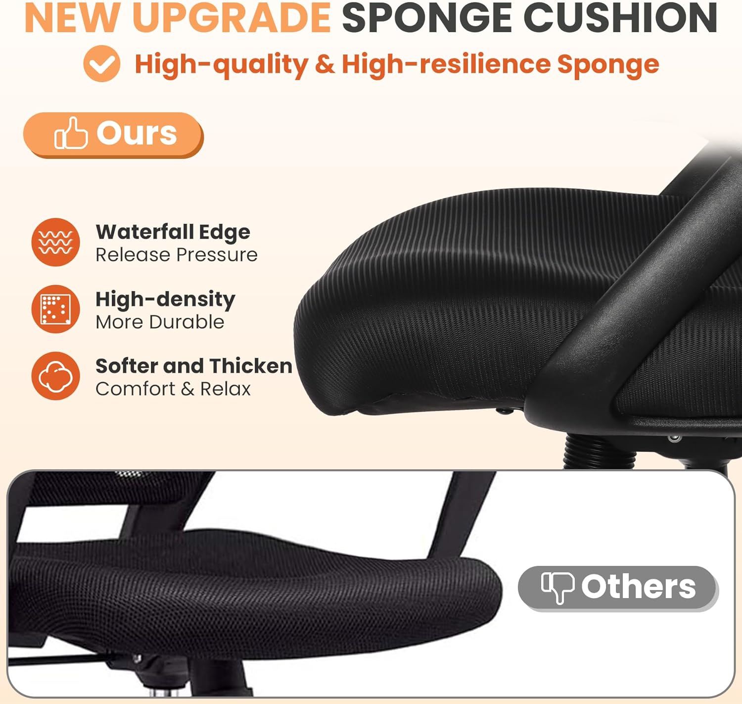 - THICKEN SEAT & SKIN-FRIENDLY FABRIC: Our drafting stools are made of softer and thicken foam to bring you more comfortable sitting experience. High resilience and high density sponge is durable and not easy to deform for long-time use. While skin-friendly mesh avoid any unpleasant rough feeling, it also adds some elegance for your room.