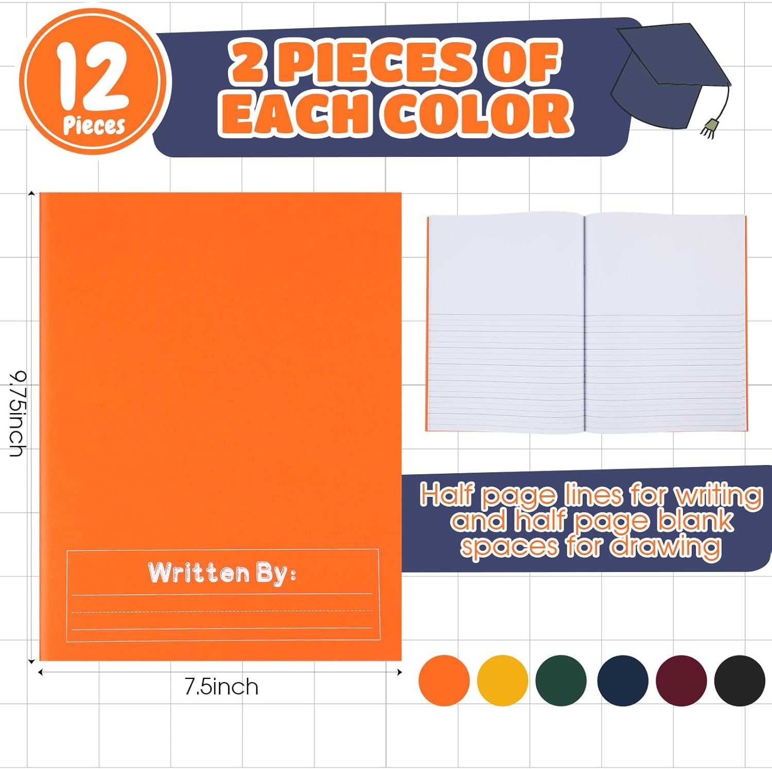 - Ample for Daily Use and Sharing: you will receive 12 pieces of primary composition notebooks, each decorated with 6 captivating cover designs; You won't have to worry about running out of notebooks anytime soon, enough to share them with friends or use them yourself for a prolonged period