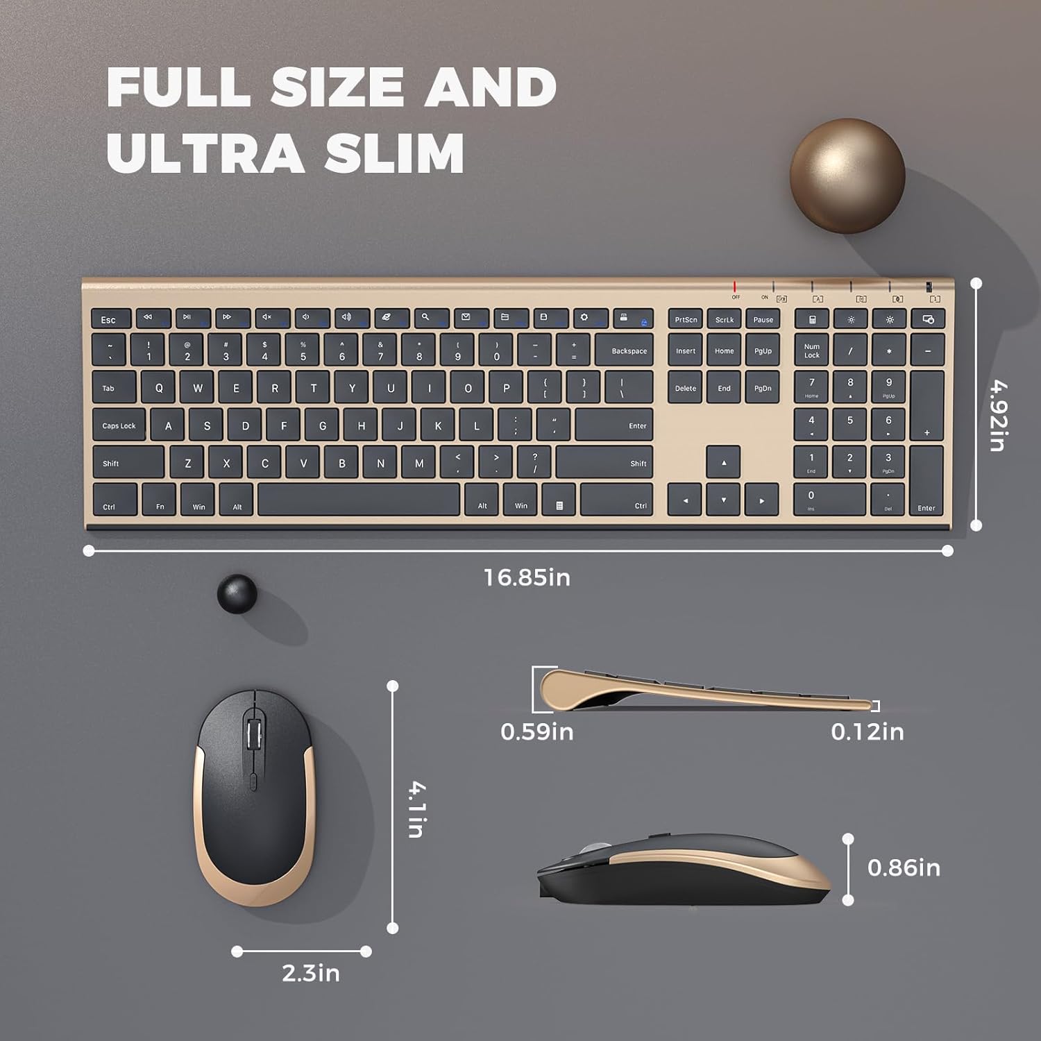 Wireless Keyboard and Mouse, Vssoplor 2.4GHz Rechargeable Compact Quiet Full-Size Keyboard and Mouse Combo with Nano USB Receiver for Windows, Laptop, PC, Notebook-Black Gold