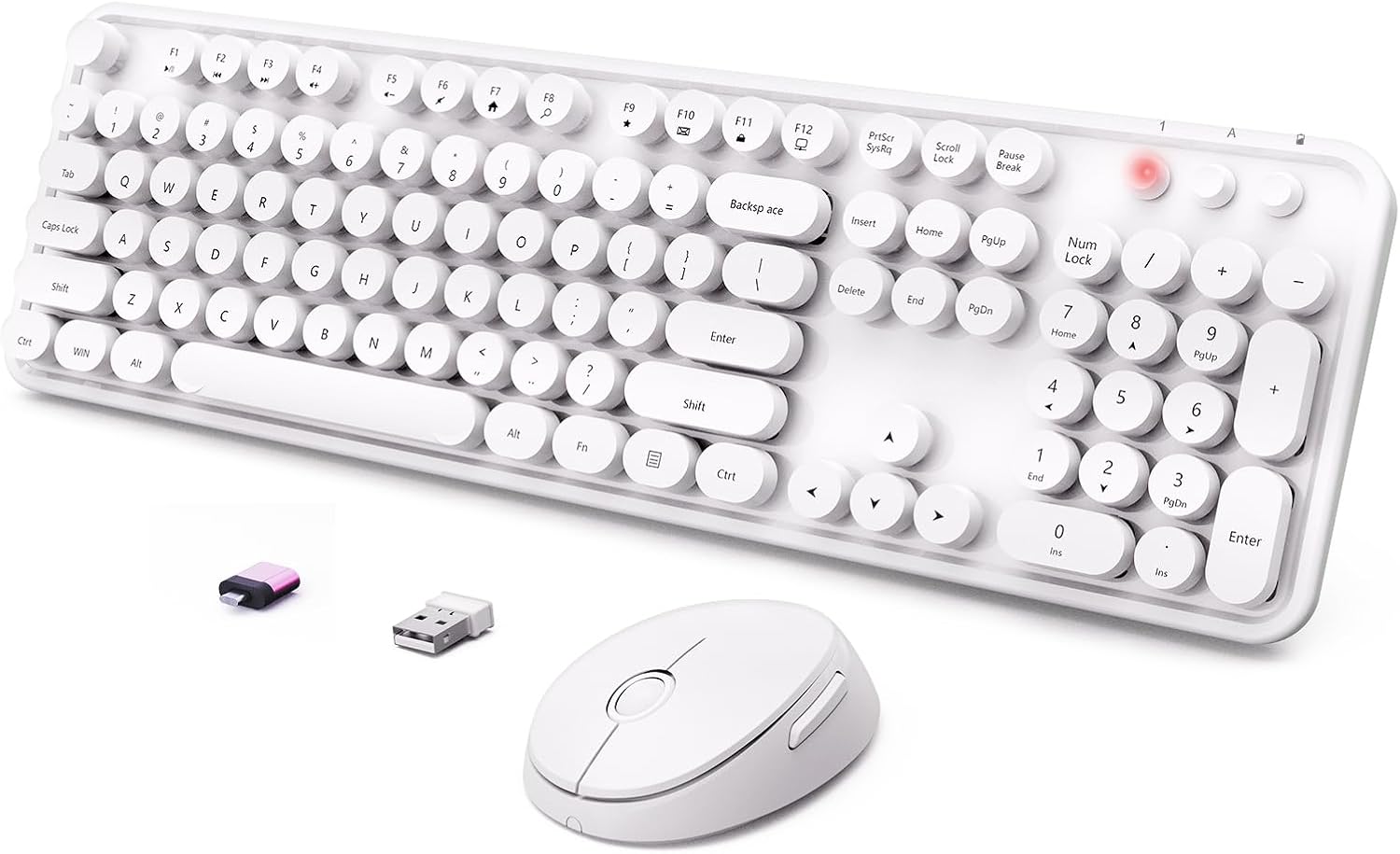 Wireless Keyboard and Mouse Combo, Ergonomic Full Size Typewriter Retro Round Keycaps Keyboard, Compatible with Windows, PC, Perfer for Home and Office Keyboards(White)