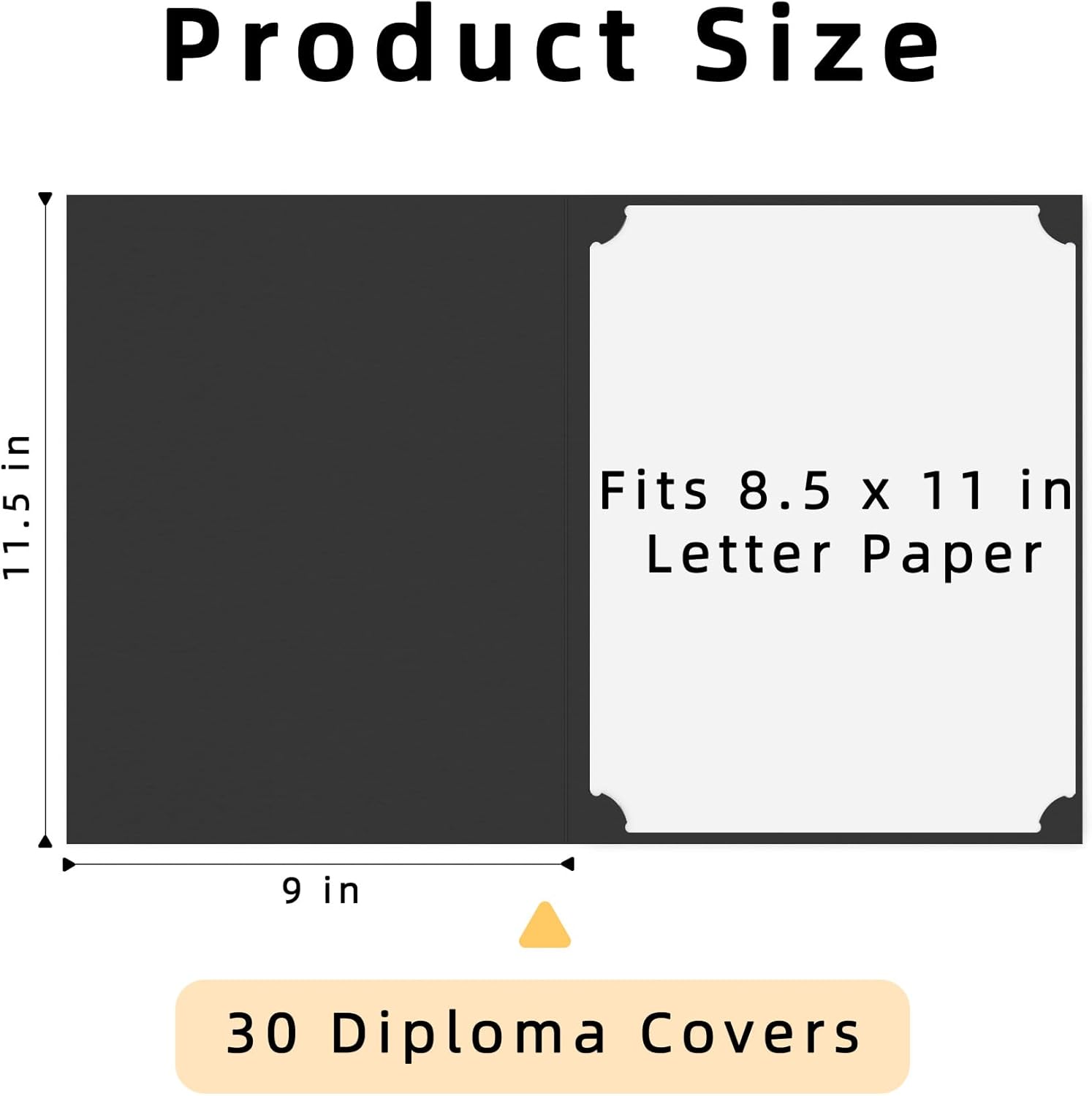 HAUTOCO 30 Pcs Certificate Holders, Black Diploma Folders Document Covers with Gold Foil Border for Letter Size 8.5x11 Cardstock, Award, Graduation