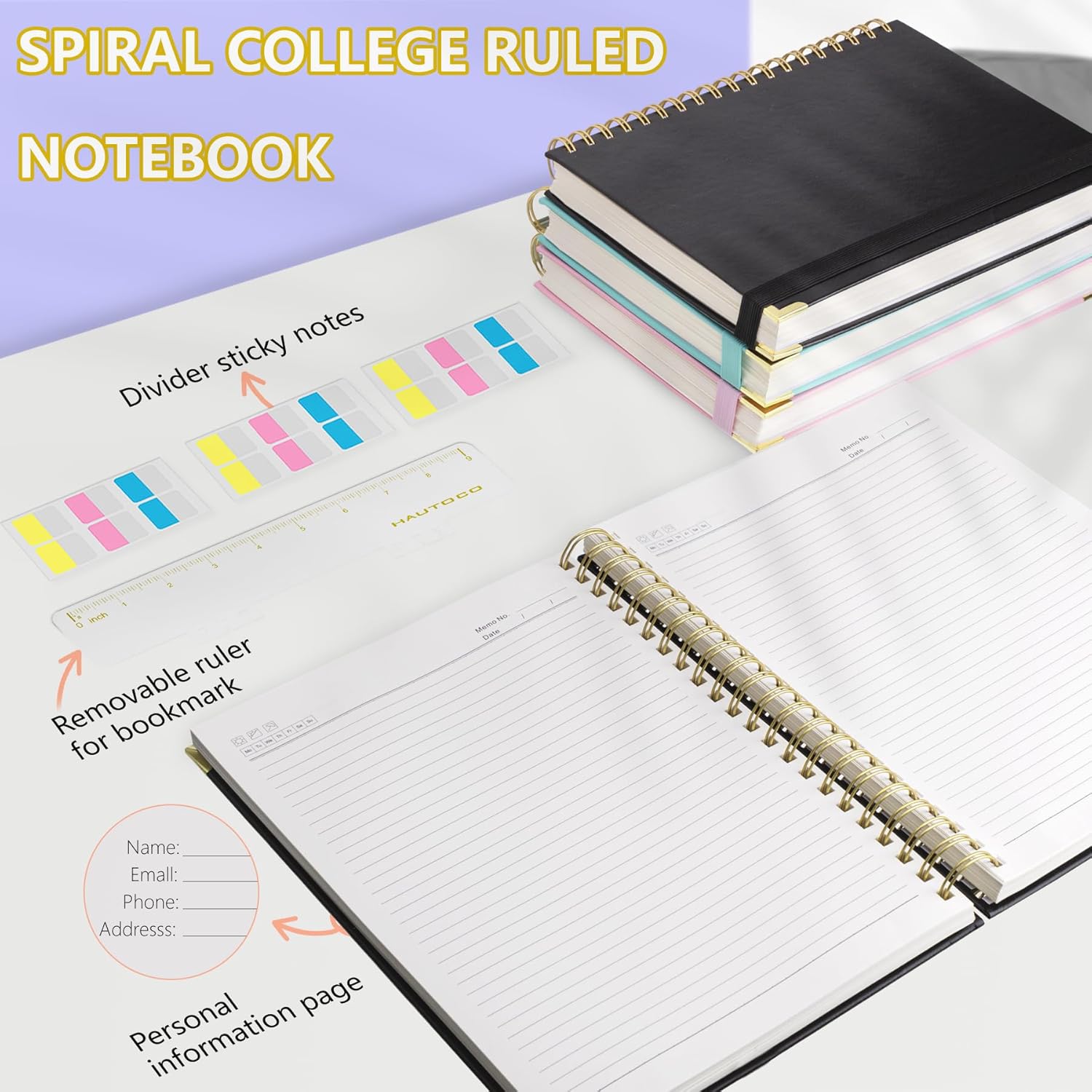 HAUTOCO Spiral Notebook Journal 8.5"x 11", College Ruled Leather Notebook with 320 Pages, 100 GSM Paper, A4 Hardcover Notebook, Lined Journaling Notebooks for Work, Office, School, Business, Black