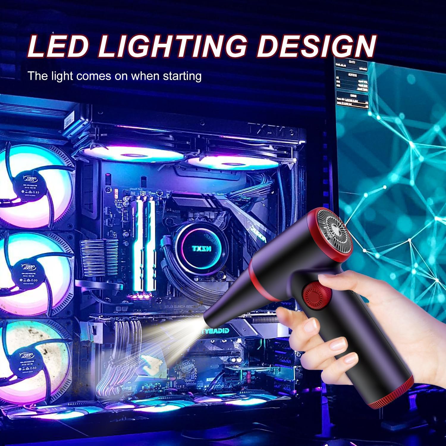 ATEngeus Compressed Air Duster, Stepless Speed Electric Air Duster, 100500RPM Cordless Air Duster with LED Light, Rechargeable Air Blower Replaces Canned Air, Keyboard Cleaner for Laptop, PC