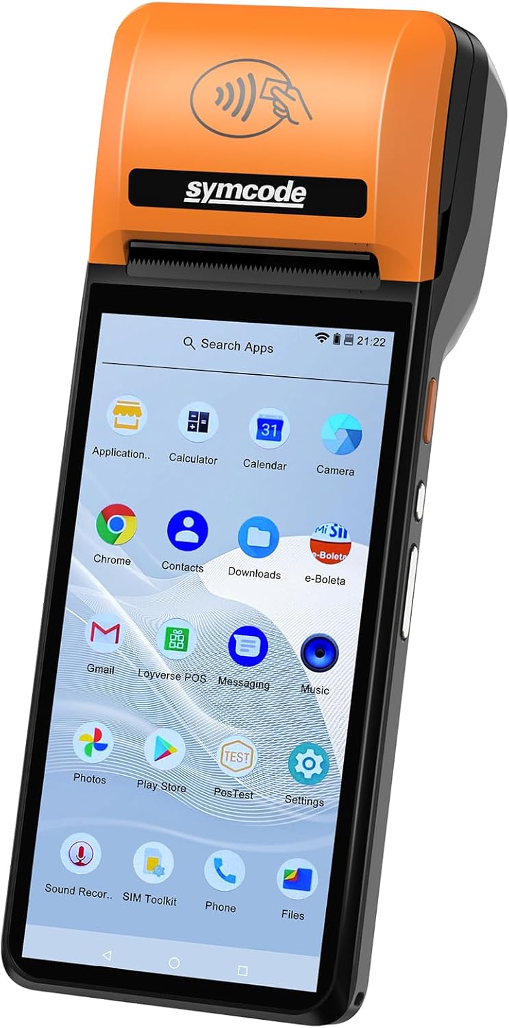 - Symcode POS PDA POS PDA Printer Mobile POS Machine Terminal,5.99" High Resolution and Clear Touch Screen, 5MP camera and Bluetooth Wifi 5G/4G/3G/2G/GPS connectivity.40MM Diameter Paper Roll Capacity, Support Nano SIM+TF , With NFC card recognition.