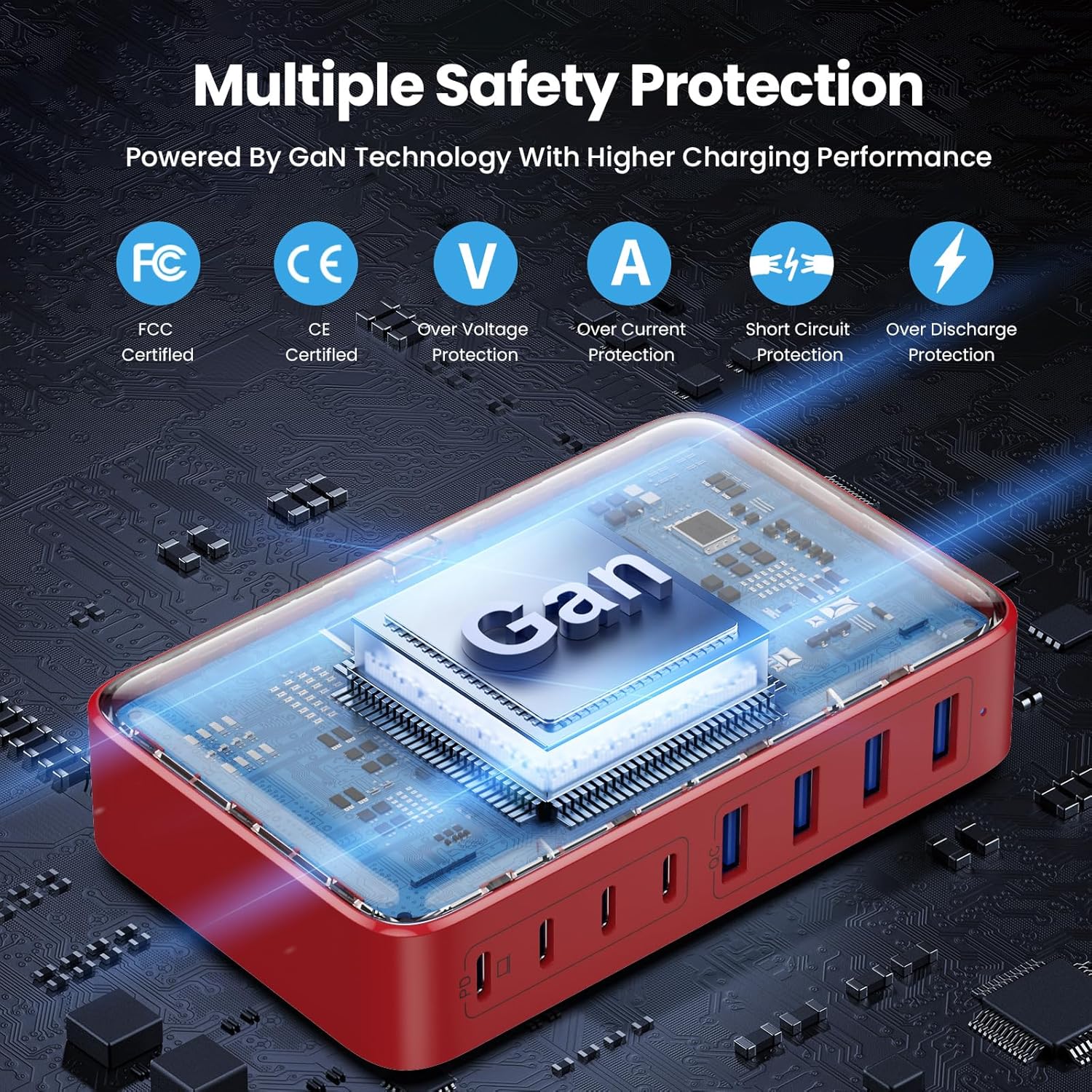 - ăLatest GAN III Chip Technology Charger StationăThe USB C charger adapted GaN III generation chip technology, built-in multi-protection system and premium microchips. With higher energy efficiency, higher resistance to radiation and upgraded heat dissipation, Gallium Nitride (GaN) makes our chargers smaller and safer without sacrificing a drop of power. Trustworthy Charging Station with 3 Years Warranty!