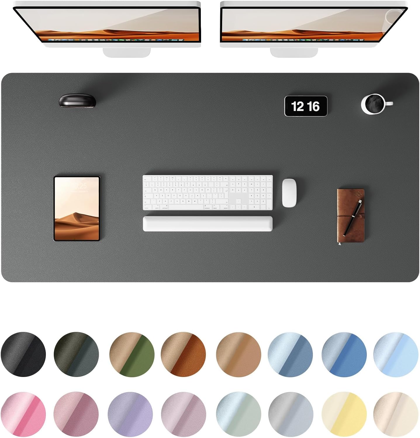 - DESK PROTECTOR: Durable PU Leather material adapted, which can protect your desk from scratches, stains, spills, heat and scuffs. Multi-color provided, change your mode by change the working atmosphere. Surface can be used as a large mouse pad, comfortable resting surface for your hands while writing, typing, and using the mouse. A must have office or study supplies.