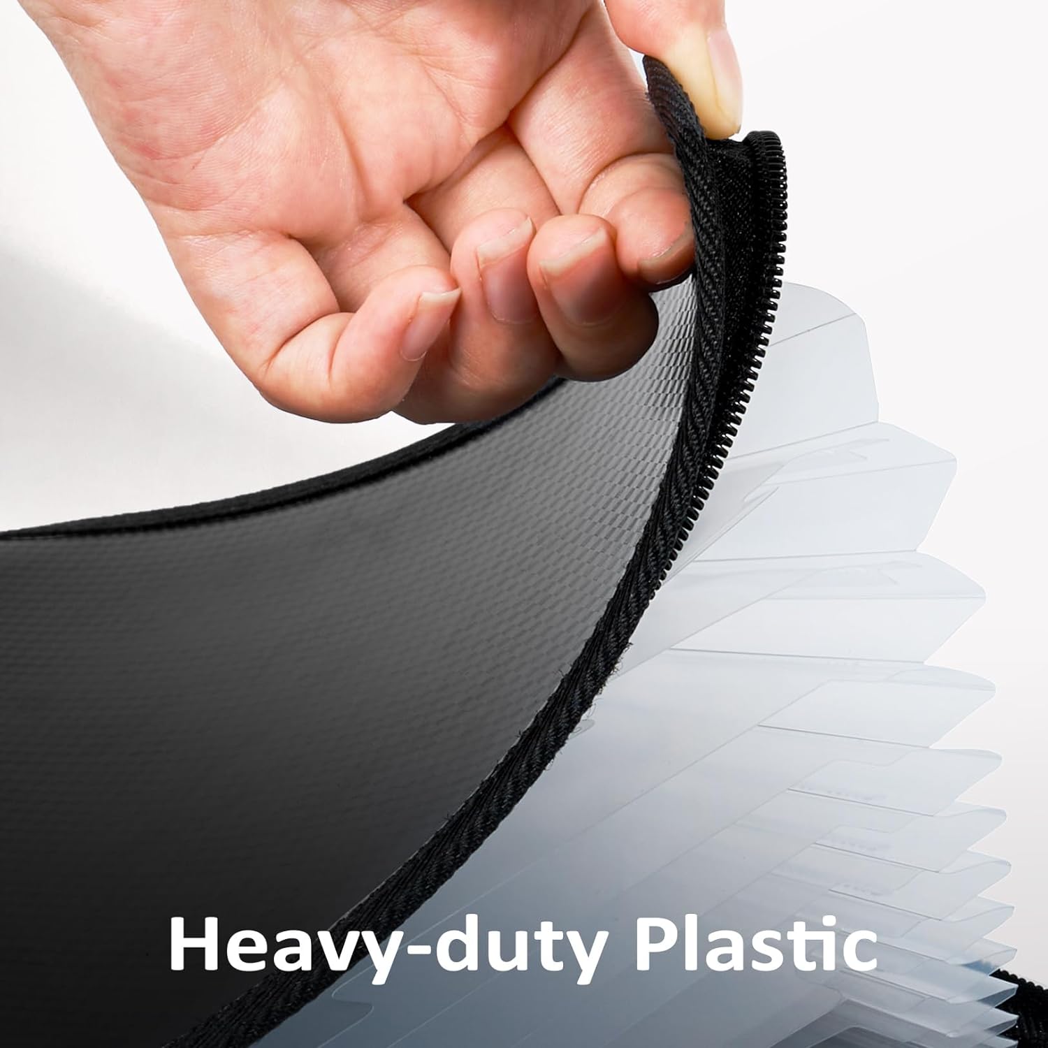 - Zipper Closure for True Security: Unlike folders using elastic bands that can let contents slip out, our expanding file folder features a dependable zipper closure, ensures everything stay safely secured inside, safe and sound. No more worries about losing small items.