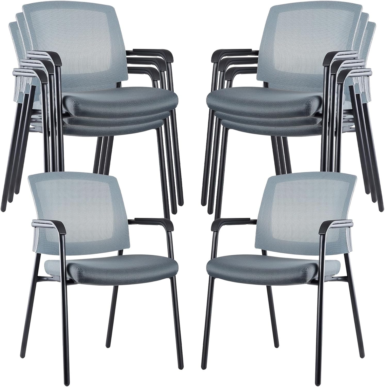 CLATINA Grey Stacking Chairs Stackable Waiting Room Chairs with Armrest, Mesh Office Reception Guest Chair for Home Desk Conference Lobby Church Medical Meeting Training Ergonomic, Set of 8