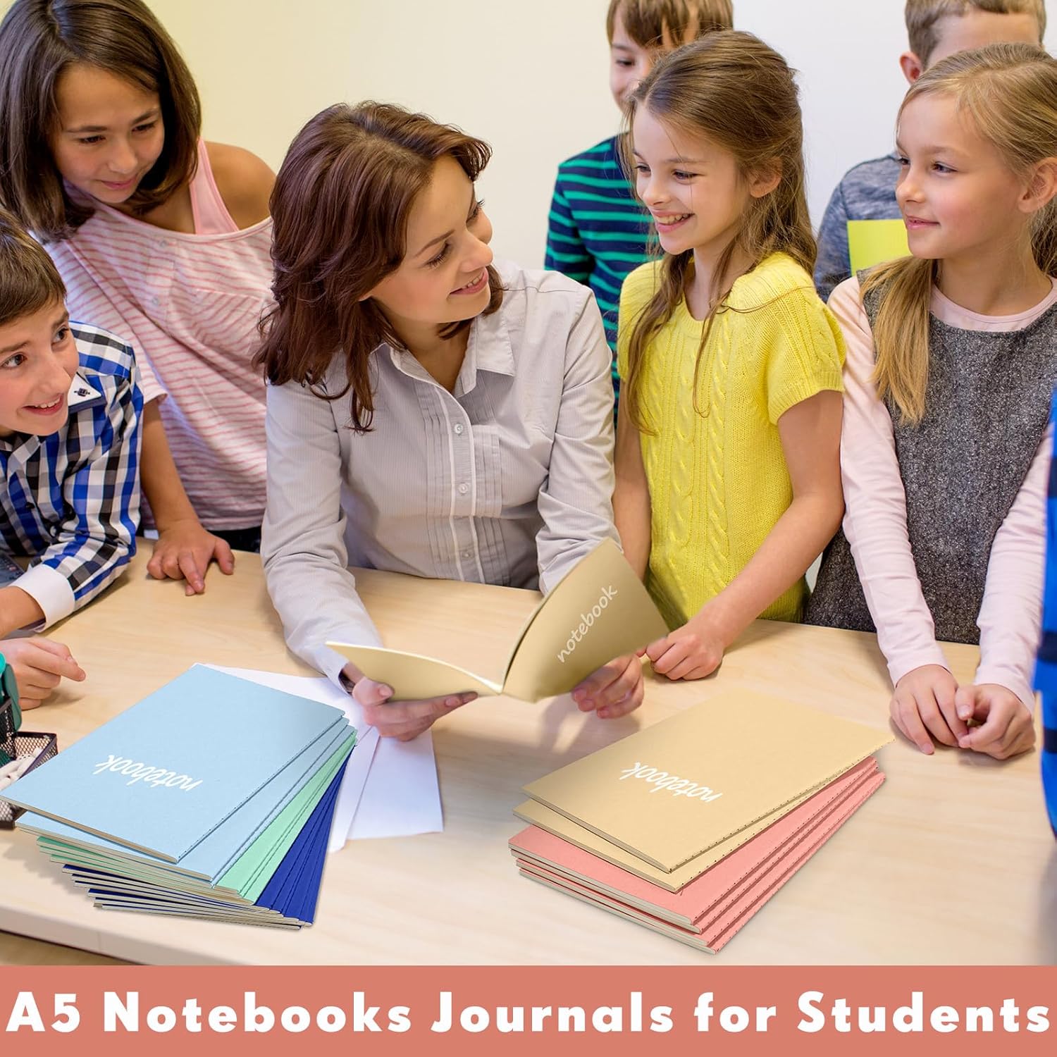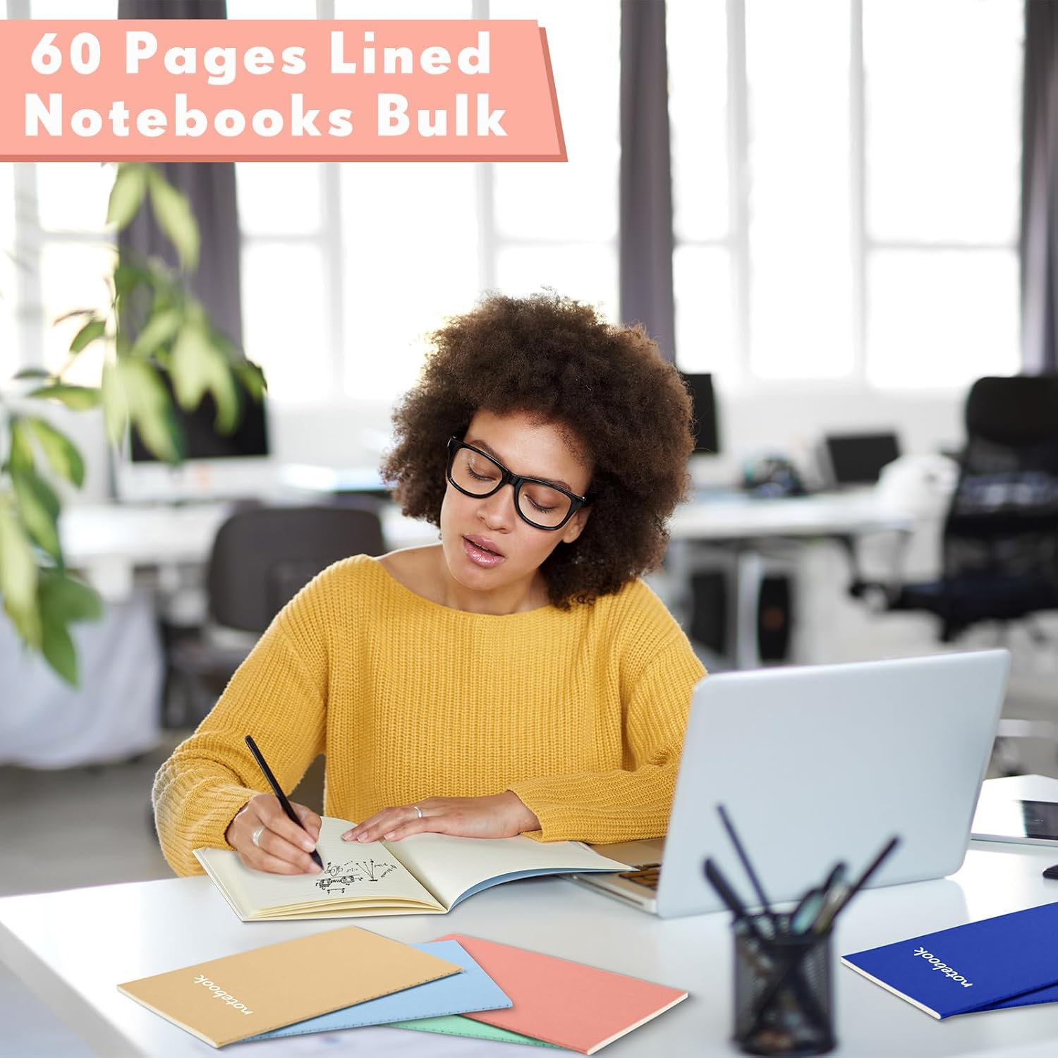 100 Pcs Kraft Notebook Journals 5.5 Inch x 8.3 Inch A5 Softcover Notebooks Bulk for Writing Sketch Office Notepad with 60 Pages 30 Sheets (Multicolor,Lined)(Bright Color,Notebook, Lined)
