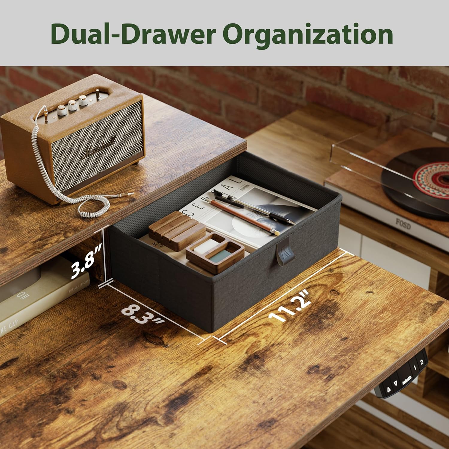 Agilestic Electric Standing Desk with 2 Drawers and Keyboard Tray, 63 x 24 Inches Ergonomic Adjustable Height Desk with Storage, Sit Stand up Computer Workstation, Rustic Brown