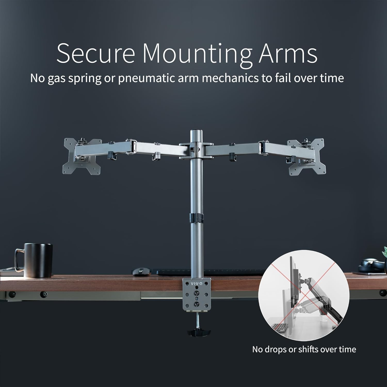 VIVO Dual Monitor Desk Mount, Heavy Duty Fully Adjustable Steel Stand, Holds 2 Computer Screens up to 30 inches and Max 22lbs Each, Gray Color, STAND-V002-GY