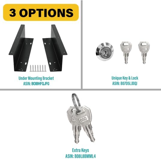 - 🔑 Additional Accessories: Extra keys (ASIN: B08L8BMML4), Unique Key and Lock (ASIN: B07D5LJDQJ), and Under Counter Mounting Metal Bracket (ASIN: B01BHFQJFG) are available, if needed.