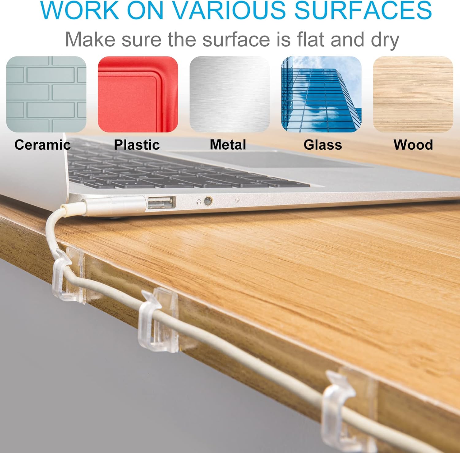 - Strong Adhesive: Those cable management clips have a upgraded sticky adhesive that can firmly hold cables, wires, and cords in place, remove without any residues and damage. Work great on plastic, metal, glass, wood surface.