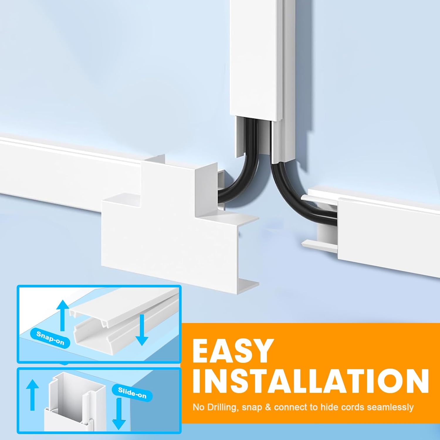 - ORGANIZE CABLE NEATLY: Use wire hiders for cable management to refresh home and office. Whether it's hiding wall mount TV powers cords or managing mess wires, our wire covers for cords always offer tailored solutions. Note: The self-adhesive backing is high adhesive strength, we are suggested that plan placement carefully before installing to prevent potential wall damage upon tape removal for re-installation