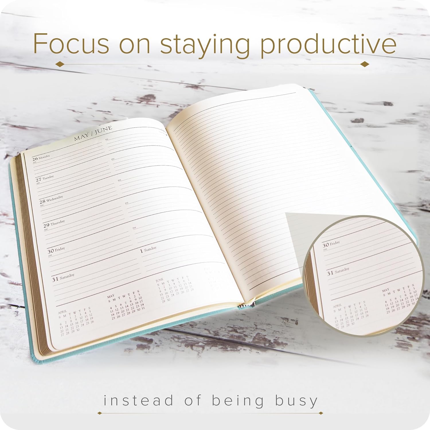 Gallery Leather Academic Planner 2025, Teacher and Student Weekly Monthly Planner, Elegantly Bound Calendar with Gold-Gilded Page Edges, 18 Months - Acadia Hope - 9 x 7 "