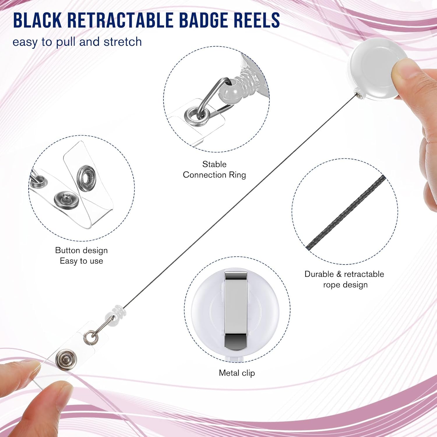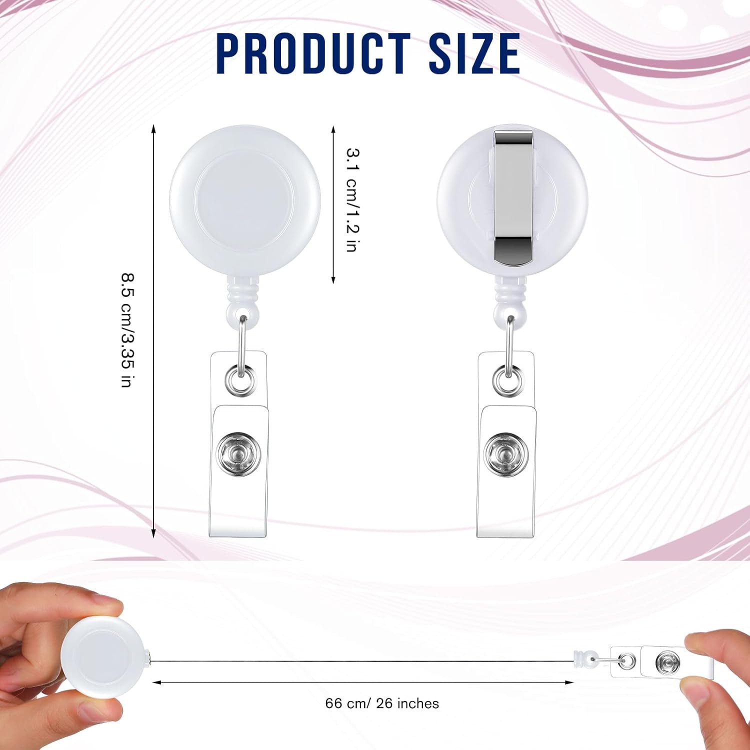 - Retractable Design: each retractable ID badge holder has a retractable cord that can be extended to 66 cm/ 26 inches, the cord is made of quality nylon material, strong and not easy to break, so you do not need to remove your badge can easily scan your badge, convenient to use, and you do not have to worry about losing it