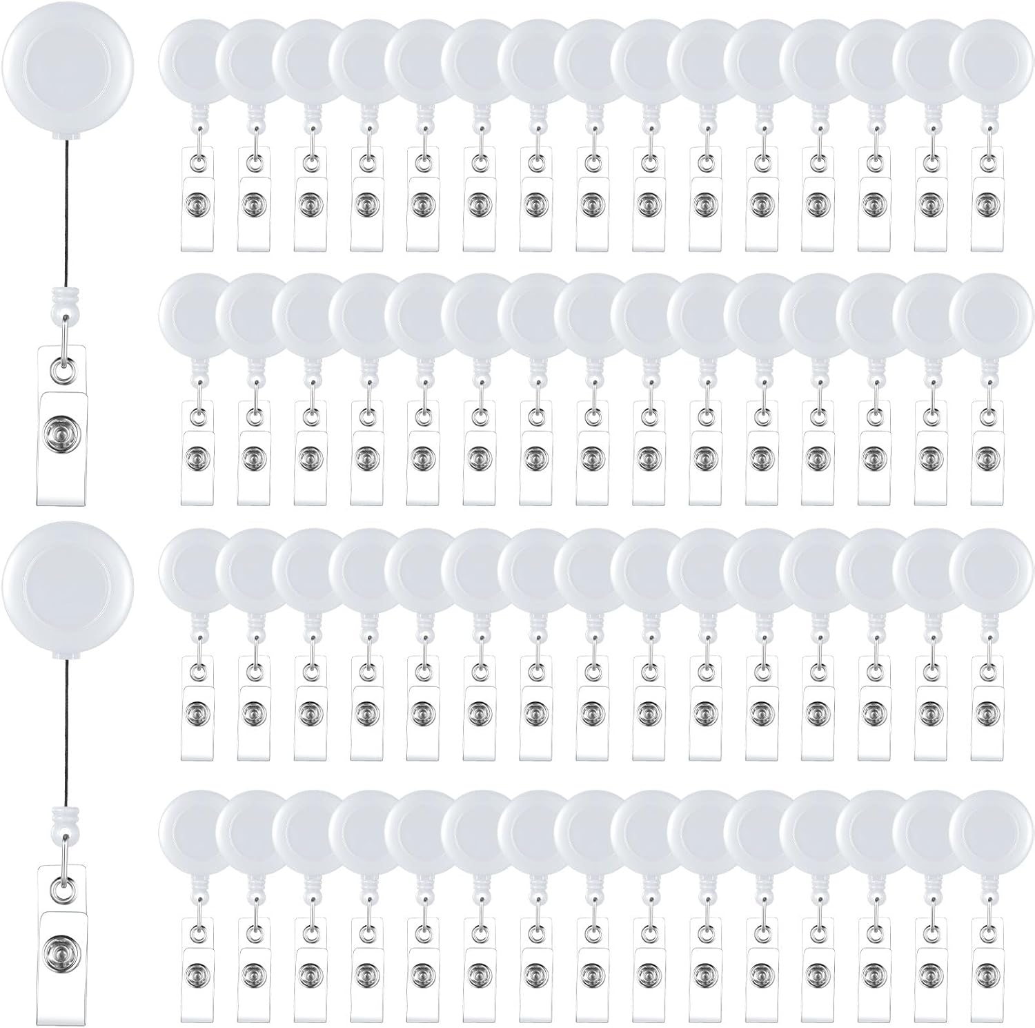 - Package Includes: 200 white retractable ID badge clips with metal belt clip and PVC transparent band. Ample quantity for daily use, replacements, or sharing with family and friends