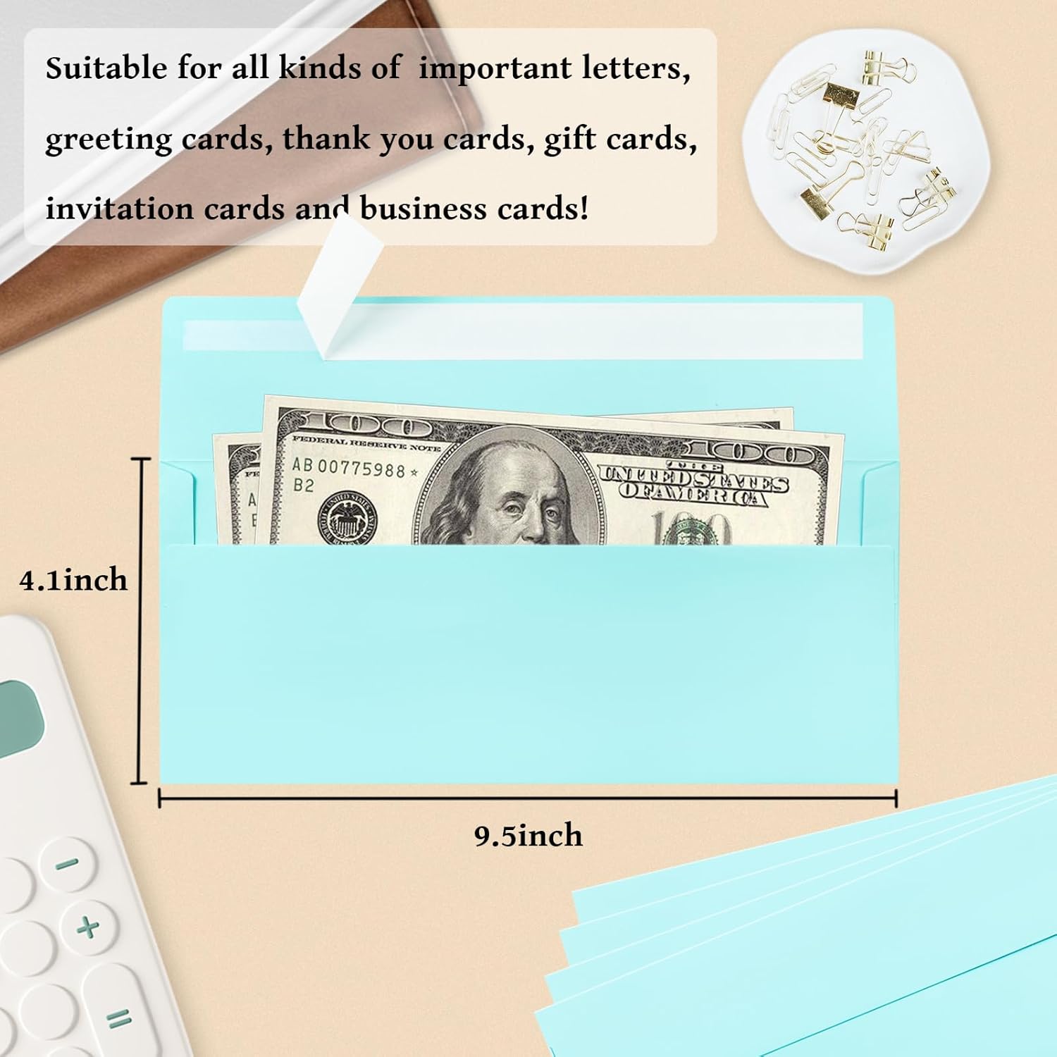 - 【Light Blue #10 Business Envelopes】These #10 business envelopes feature a light blue color. The envelopes kit contains 100 pieces 4 1/8 x 9 1/2 Inches light blue envelopes, perfect for your office or home purposes