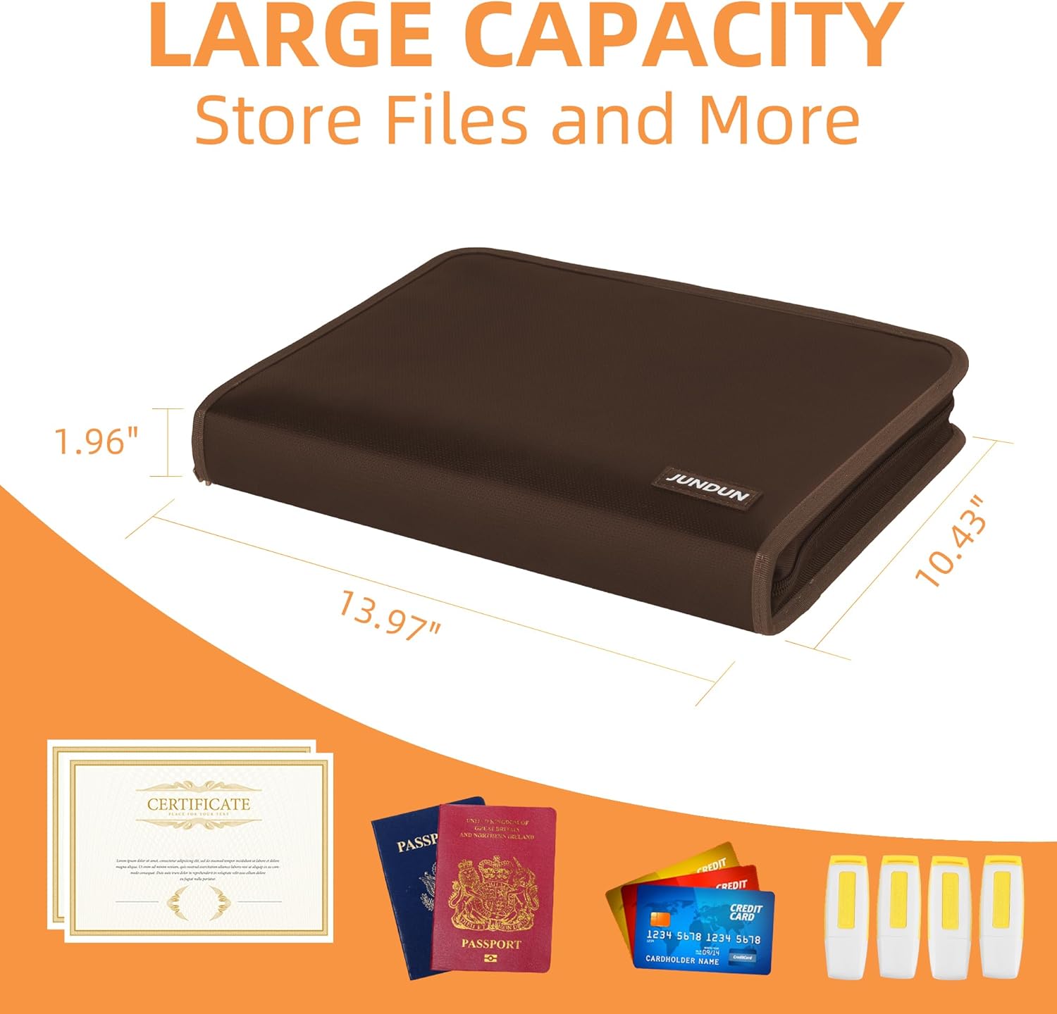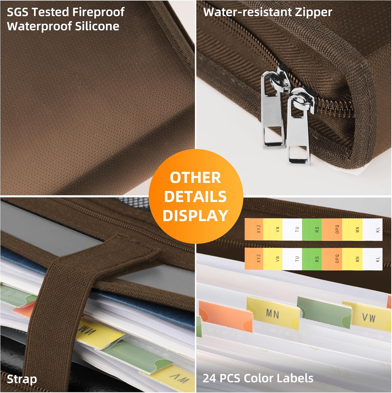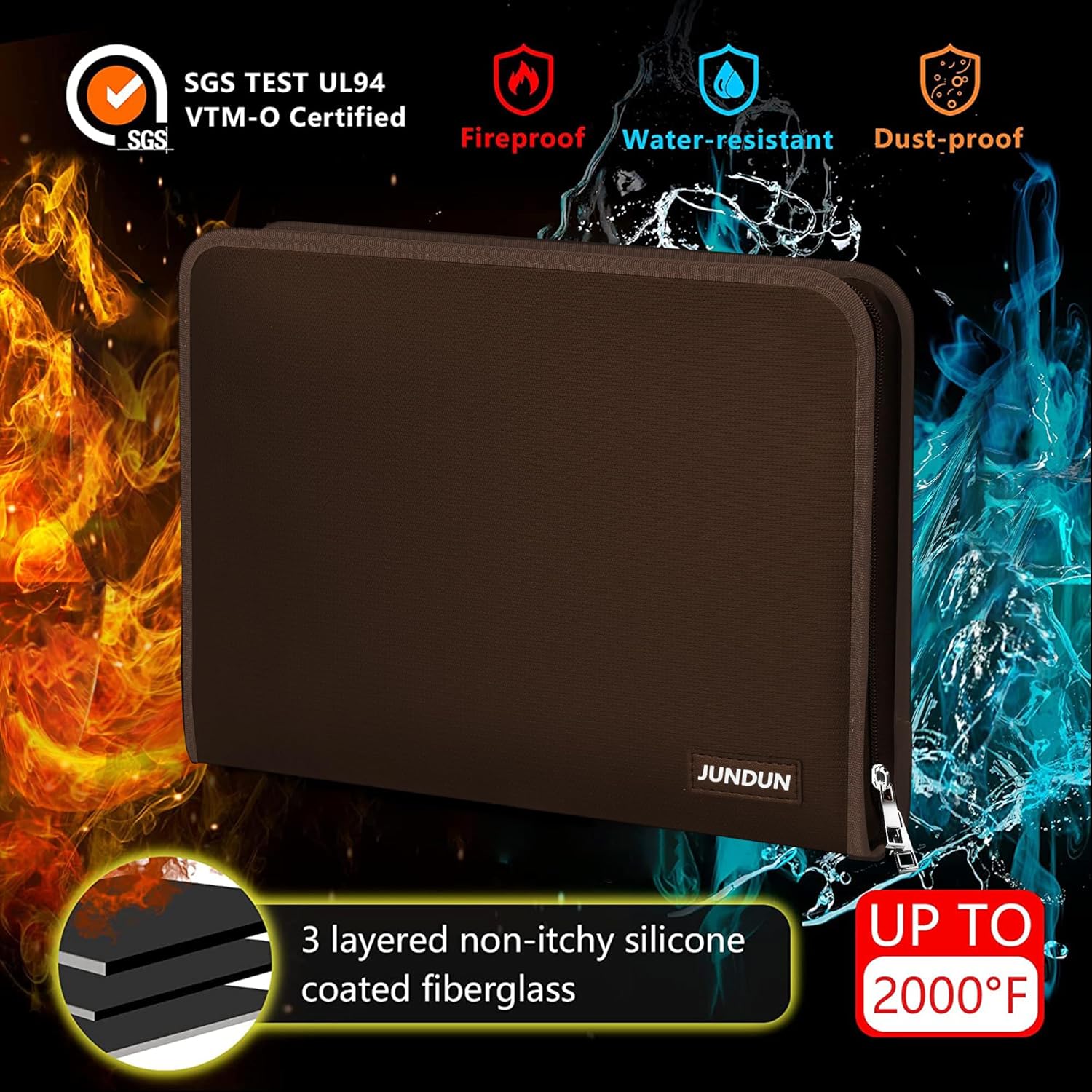 - HIGH-QUALITY MATERIALS: Protect your documents with our fireproof accordion file organizer.Made of double-layered,non-itchy,silicone-coated fiberglass,it can withstand up to 2000℉ and has passed the SGS Test (UL94 VTM-0 Certified). Highly water-resistant,it's the perfect solution for unexpected spills or accidents.Keep your files organized and easily accessible with our expanding file organizer.Invest in added protection today!