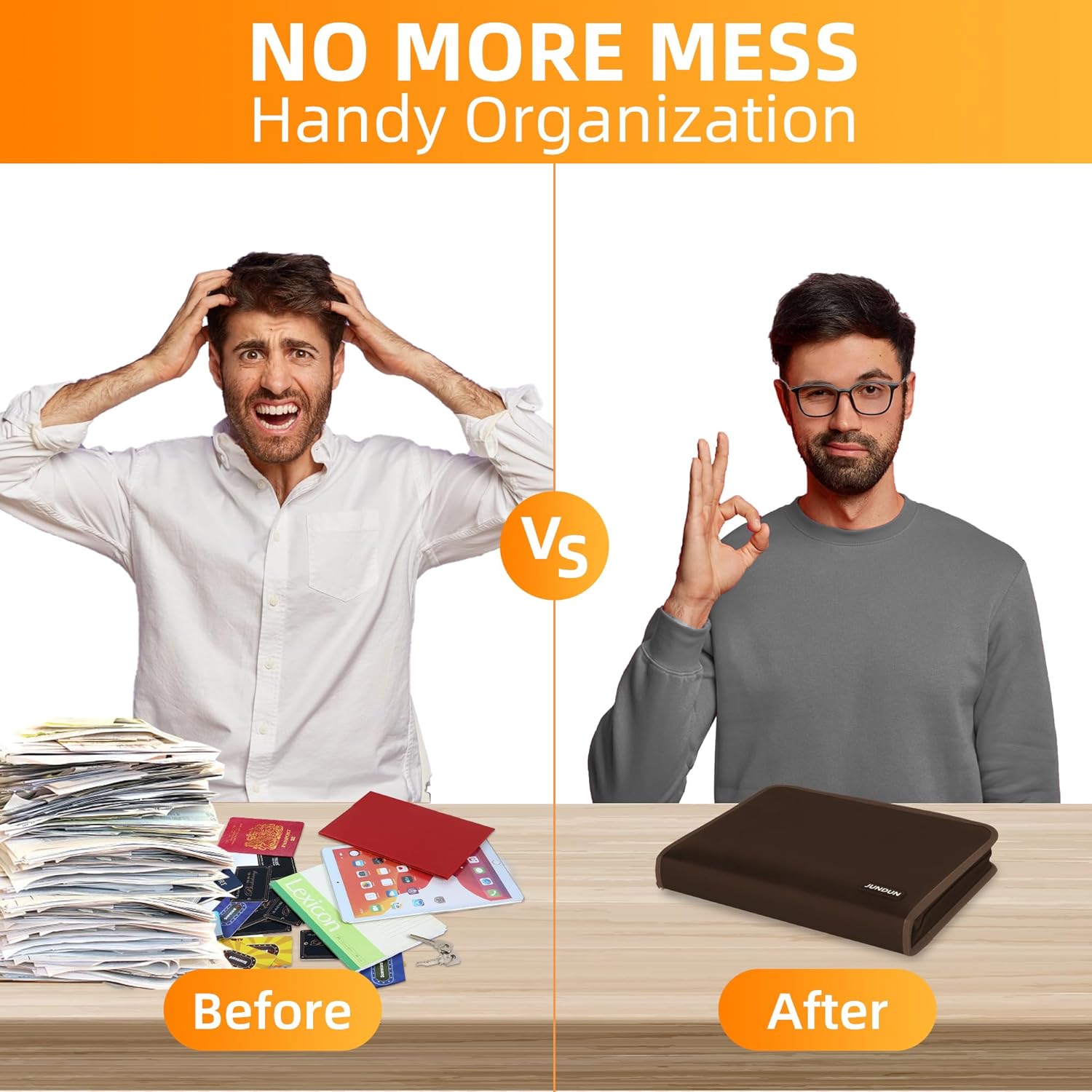 - PLENTY OF ROOM: Our Accordian File Organizer has 13 individual pockets,1 zipper pocket,1 pen slot,6 card slots,4 small mesh bags,4 medium mesh bags,and 1 main pocket,all in a compact size of 13.97"x10.43"x1.96".With ample space,you can securely store all your important documents and other items in this accordian folder while effectively classifying and finding your files
