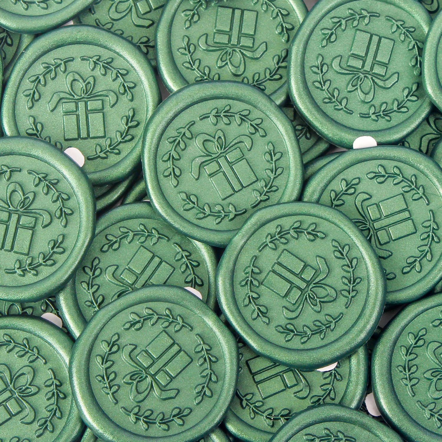 Wax Seal Stickers with Various Seals Patterns, Green Adhesive Sealing Wax Sticker Set for Wedding Invitations Customize, Envelopes Sealer, Christmas Gift (Gift, 60 Pcs)