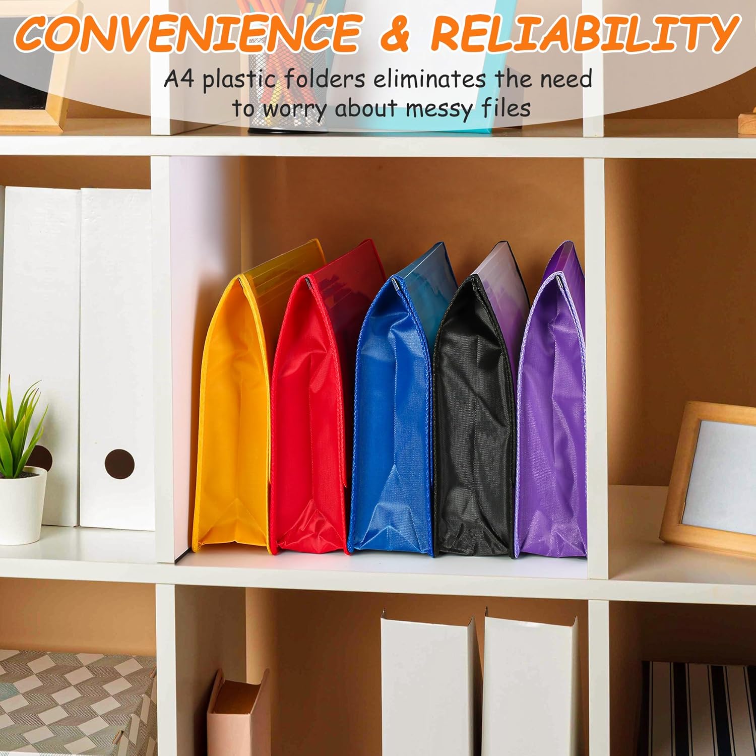 - 【Large Capacity Storage】:600 sheet capacity which makes it suitable for daily filing and storing of documents; Five vibrant Colors:Red,Green,Purple,Orange,Dark Blue,which easy to organize and distinguish with different color.