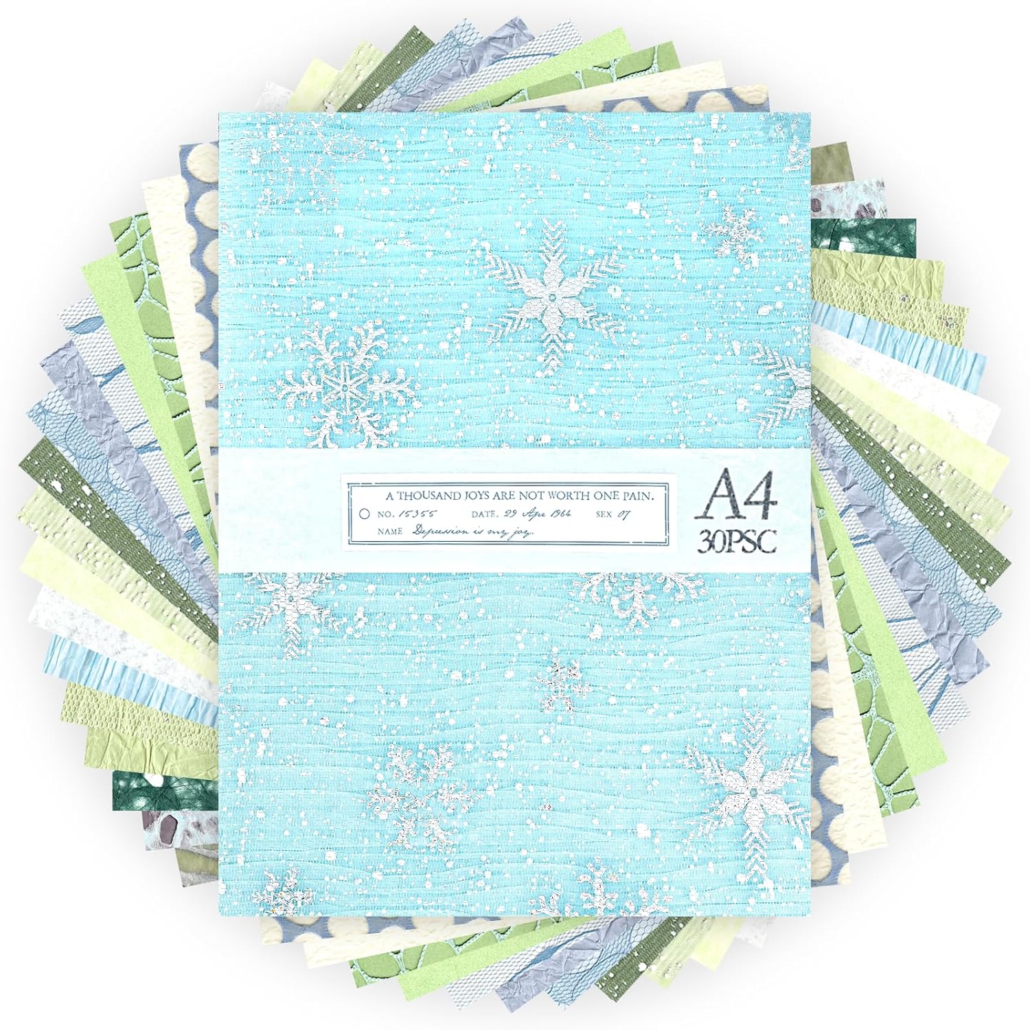 Aromoty 30 sheets A4 size Textured Scrapbook Paper&Mesh Fabric set - Large Handmade Craft Mulberry Special Paper Mix for Scrapbooking Junk Journal Supplies Card Materials Collage, 11.7x8.3 Inches