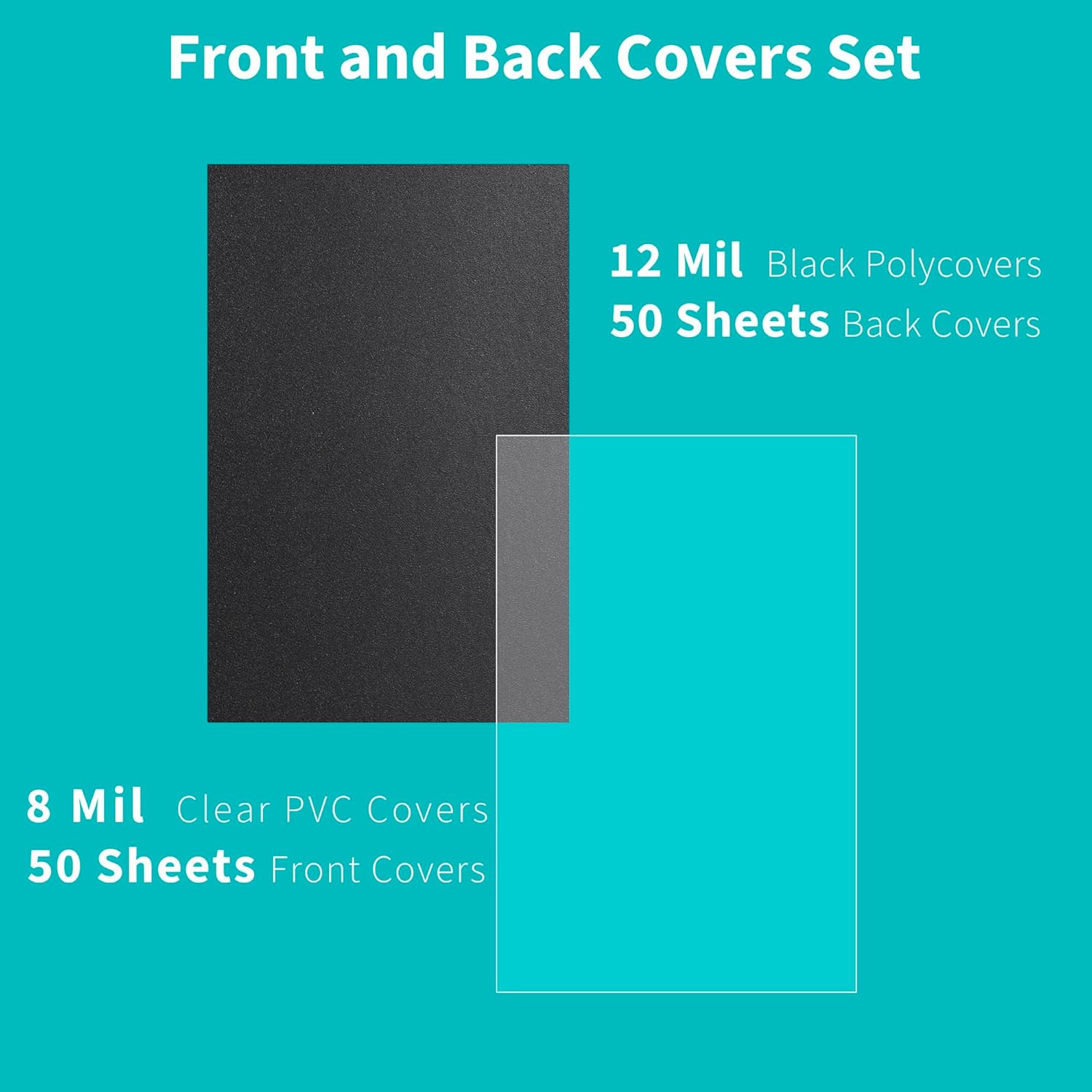 - 50 Pcs of Sand-Textured Polycovers: These 12 mil sand-textured polycovers are long-lasting and sturdy, waterproof, tear-proof, and robust enough for frequent handling, ensuring your documents are protected from damage and kept clean.