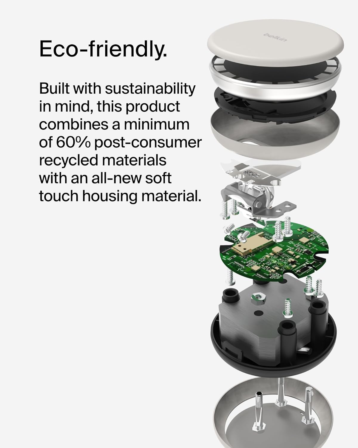 - STURDY and SUSTAINABLE: A non-slip weighted base ensures a sturdy home for all your devices. Built with sustainability in mind, this product combines a minimum of 60% post-consumer recycled materials with an all-new soft touch housing material.