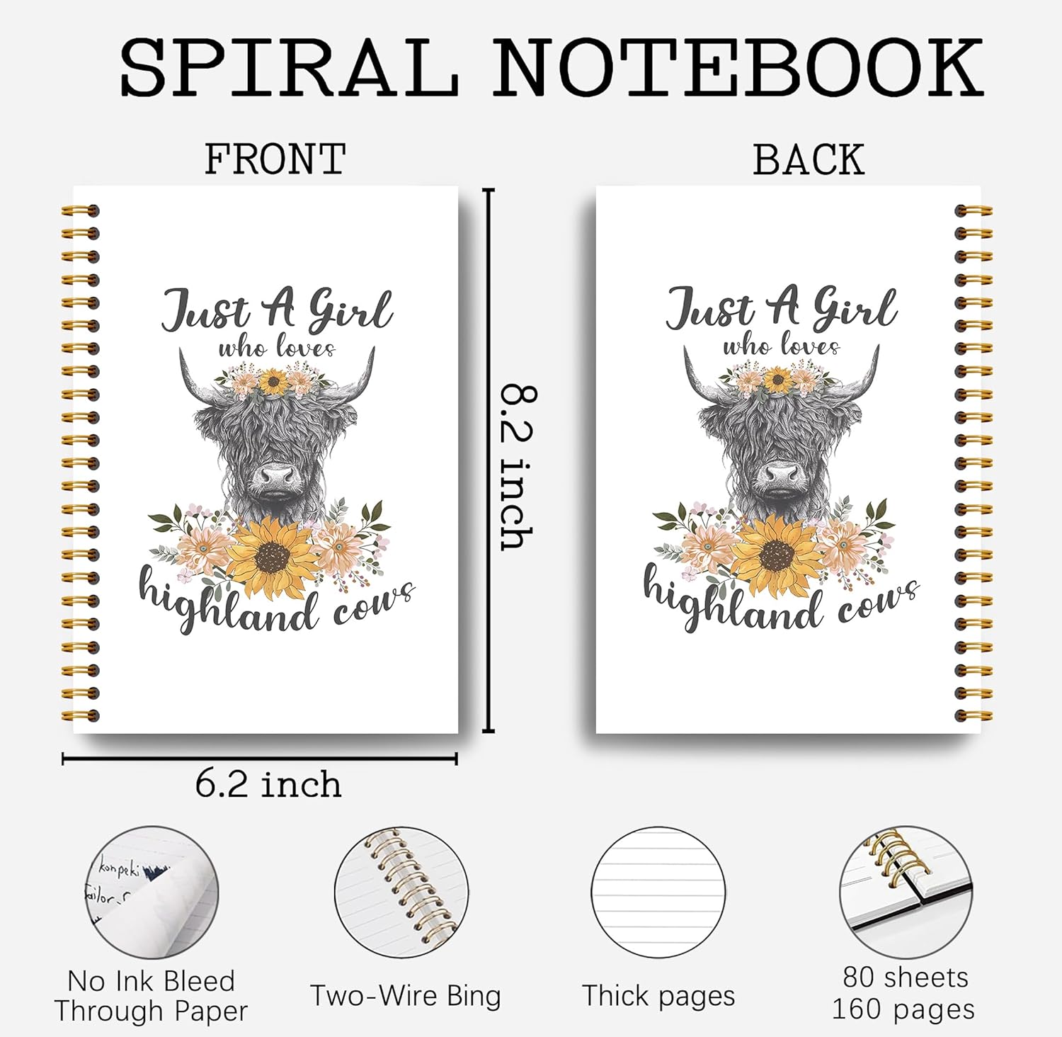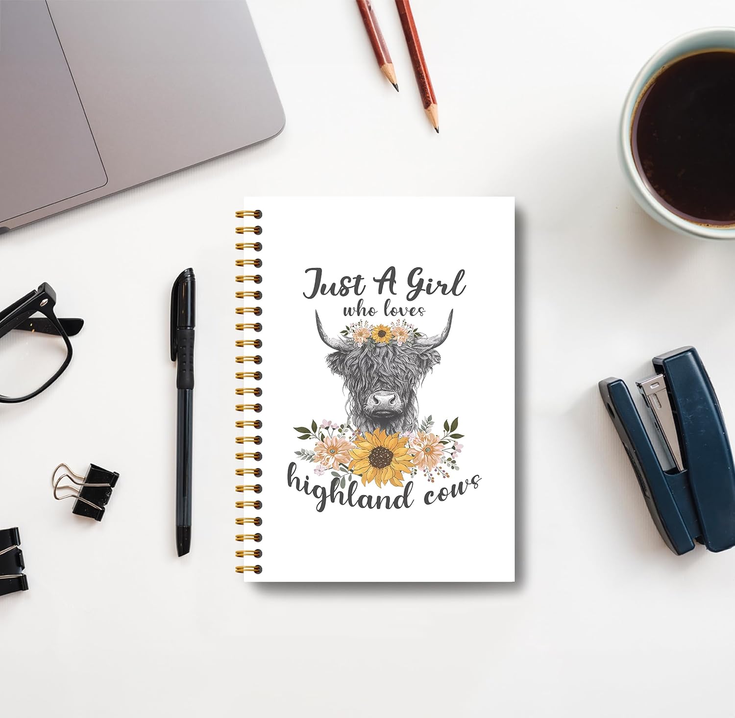 Highland Cow Notebook - Western Notebook, Cow Notebook, Highland Cow Office Supplies, Highland Cow Gifts, Cow Stuff, Just a Girl Who Loves Highland Cows Spiral Notebook 5.5x8.3