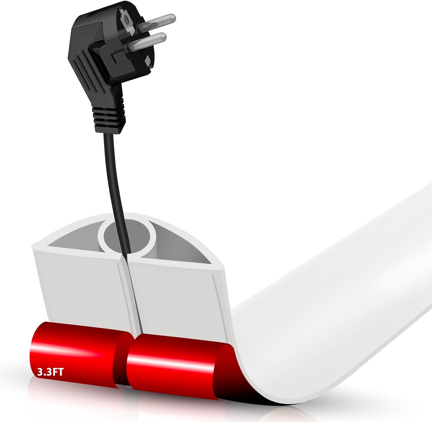 Floor Cord Cover Self Adhesive Cord Hider,3.3FT Cable Management, Extension Strip Protector for Wires, Prevent Cable Trips for Offices, Gyms, Exhibitions Cavity:0.3"(W) x 0.28"(H) White