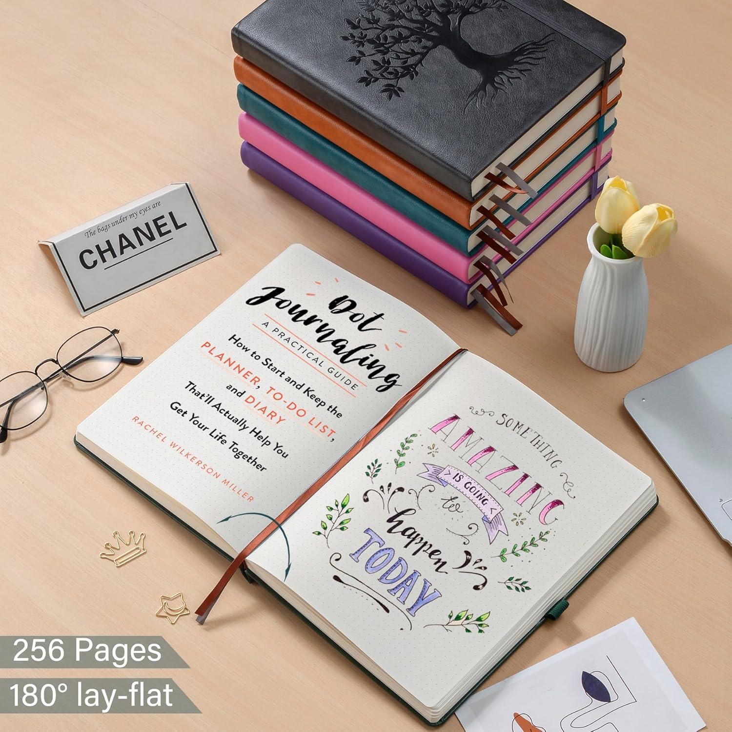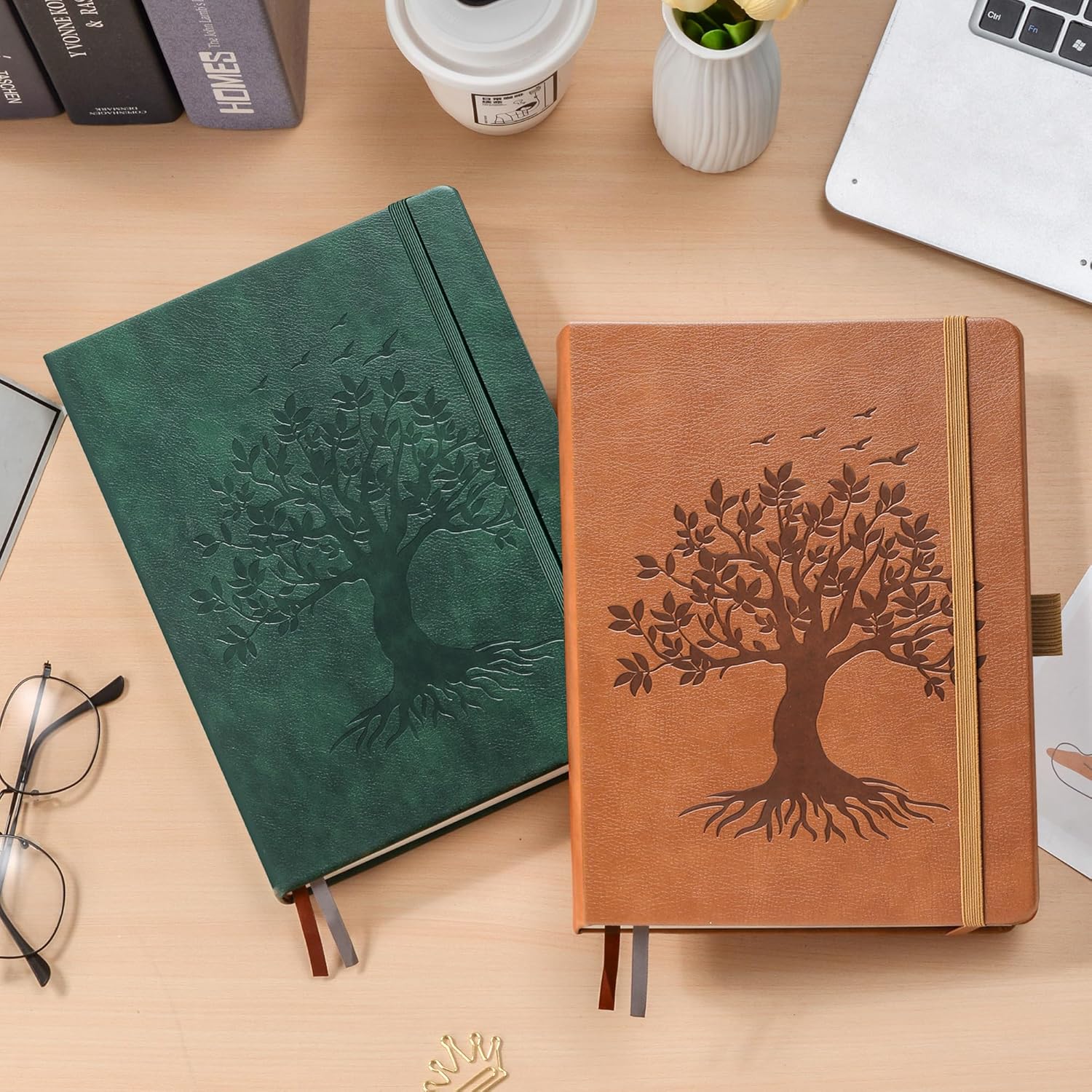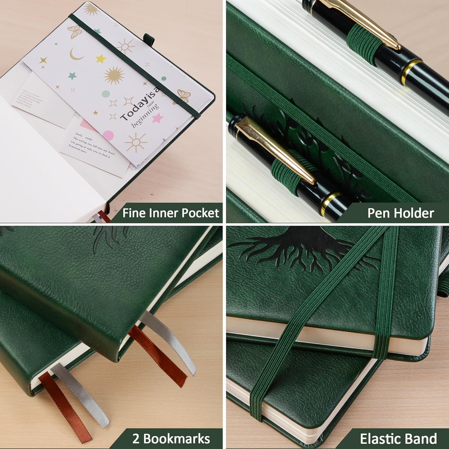 ZXHQ A5 Bullet Dotted Journal Notebook - 150 gsm Thick Paper, 256 Pages, Dot Grid Hardcover, Tree of Life Design, Fine Inner Pocket - 5.9" × 8.5" Dark Green