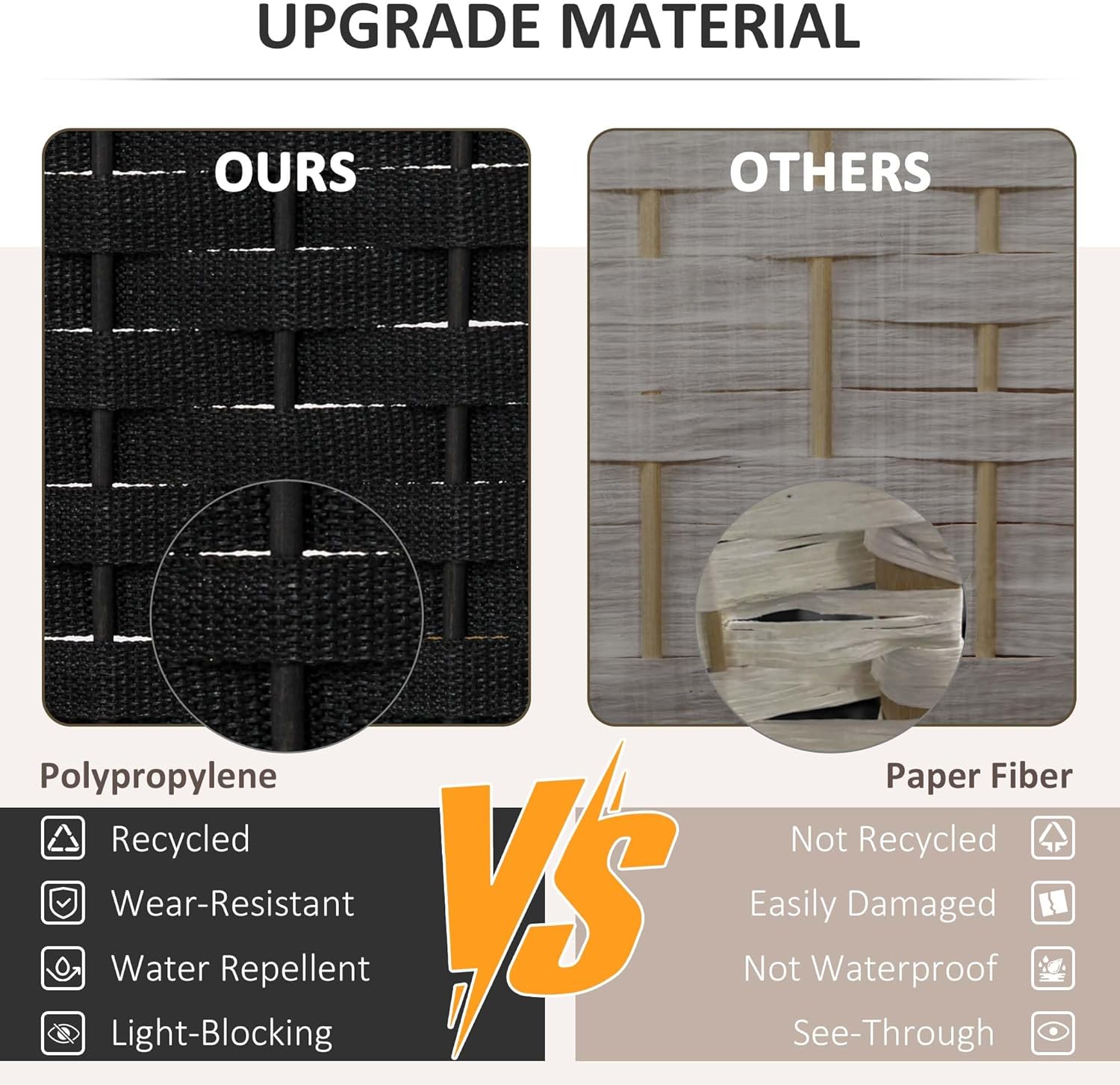 - Quality Material: Our room divider wall is made from a pine wood frame for sturdiness and polypropylene webbing for superior privacy and durability. It outperforms traditional paper fiber panels and their issues with separation and gaps.