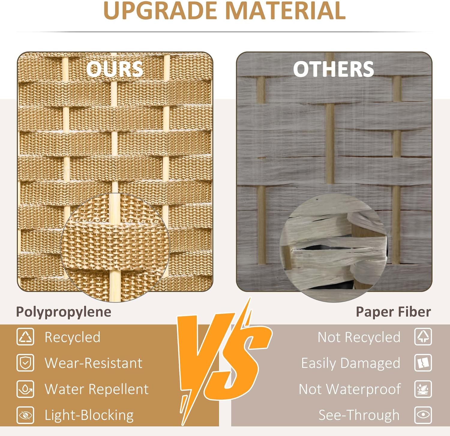 - Quality Material: Our room divider wall is made from a pine wood frame for sturdiness and polypropylene webbing for superior privacy and durability. It outperforms traditional paper fiber panels and their issues with separation and gaps.