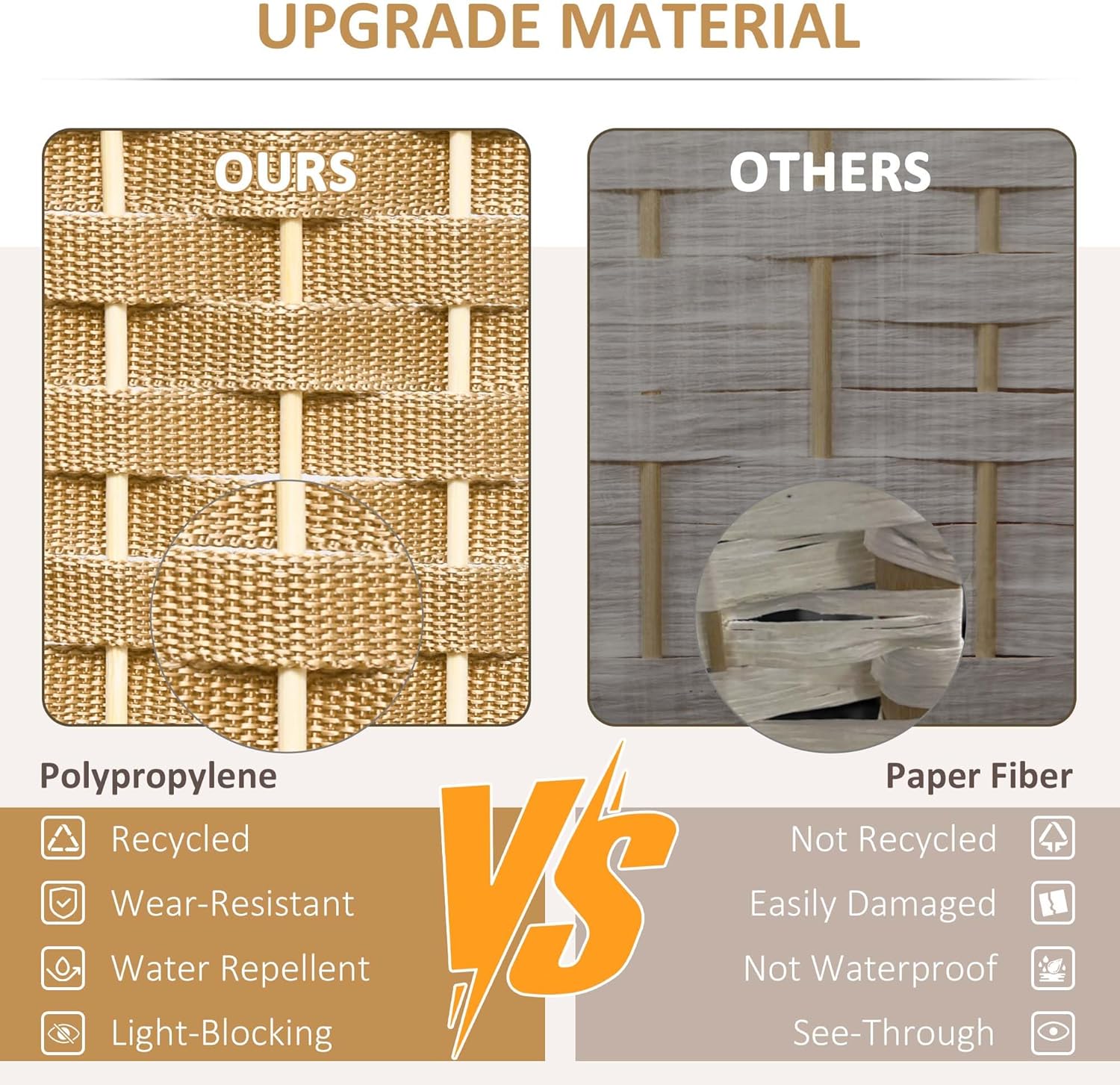 - Quality Material: Our room divider wall is made from a pine wood frame for sturdiness and polypropylene webbing for superior privacy and durability. It outperforms traditional paper fiber panels and their issues with separation and gaps.