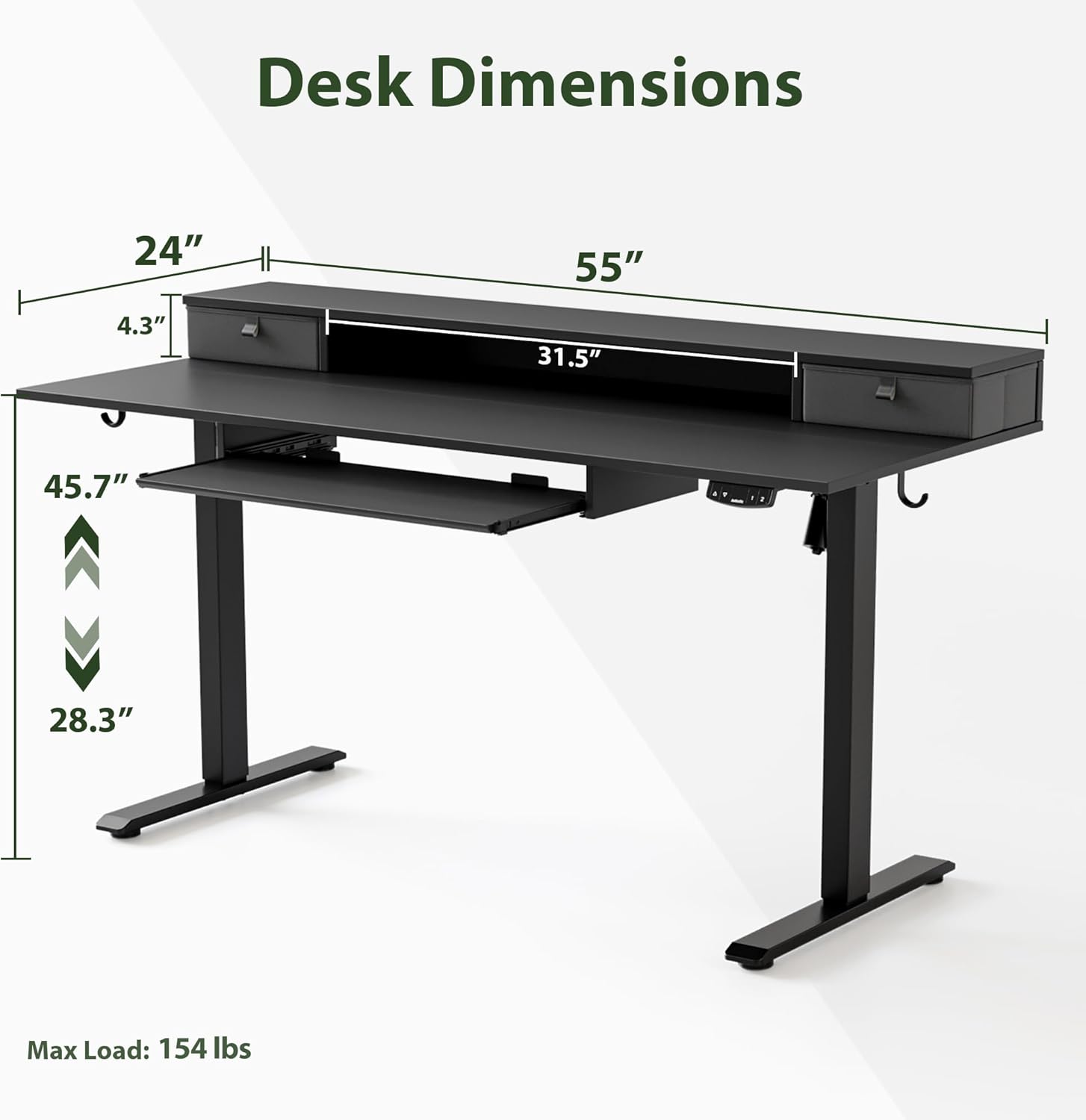 - Size : 55 x 24 Inches with keyboard tray