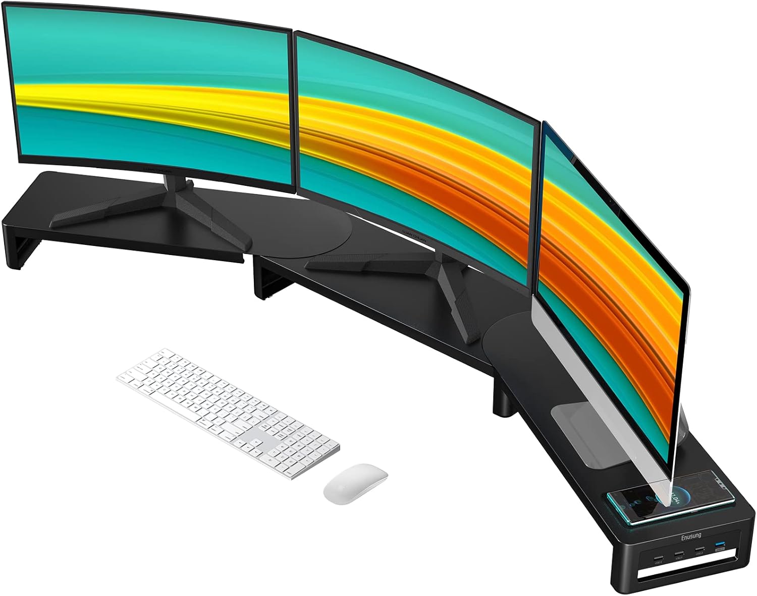 Monitor Stand with Wireless Charging and 4 USB Ports, Steel Monitor Stands for 3 Monitors, Metal Computer Stand Riser for Desk, Office, Laptop, PC up to 32 Inches (Black)