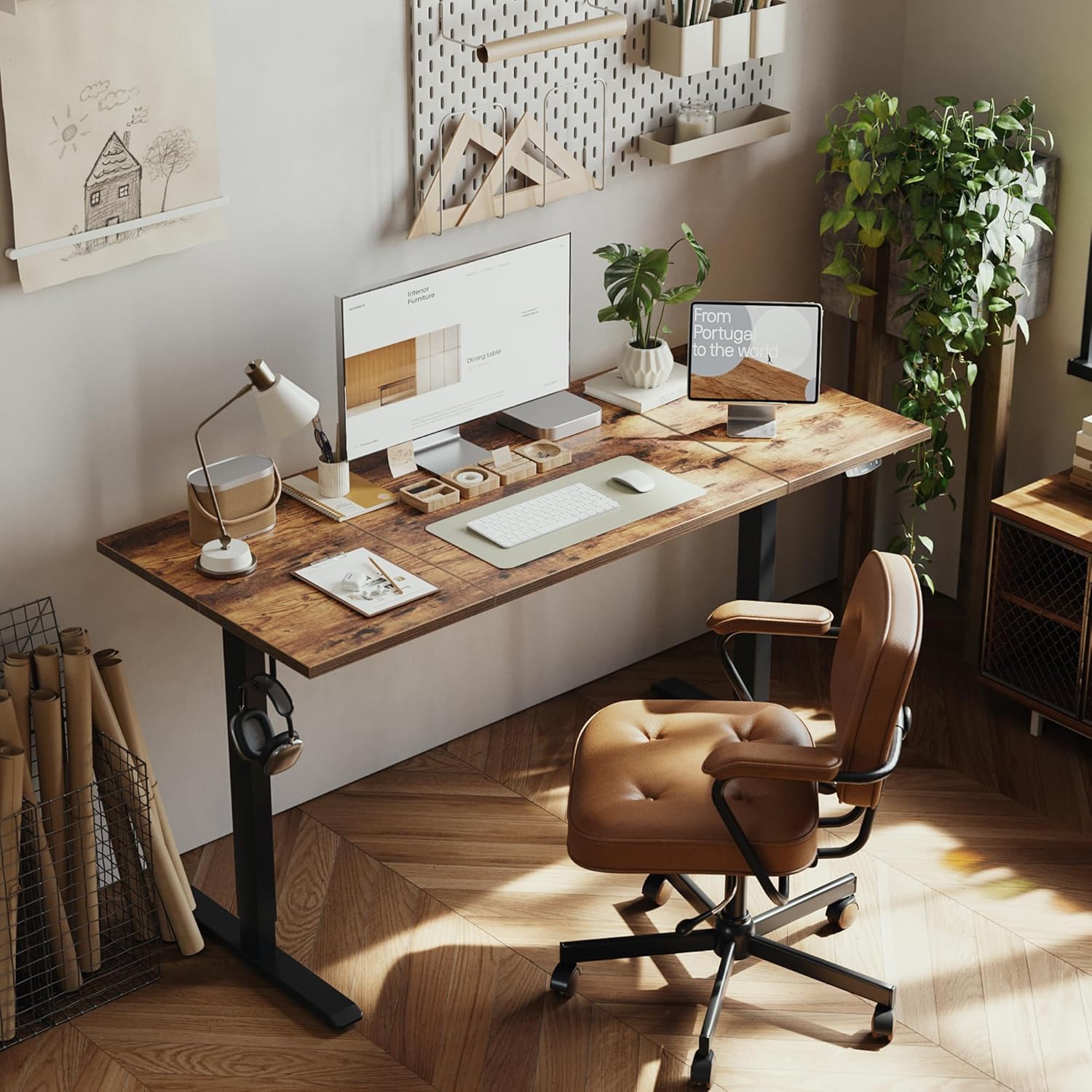 Agilestic Electric Standing Desk, Large 63 x 24 Inches Height Adjustable Desk, Sit Stand up Desk for Work Office Home, Splice Board, Rustic Brown