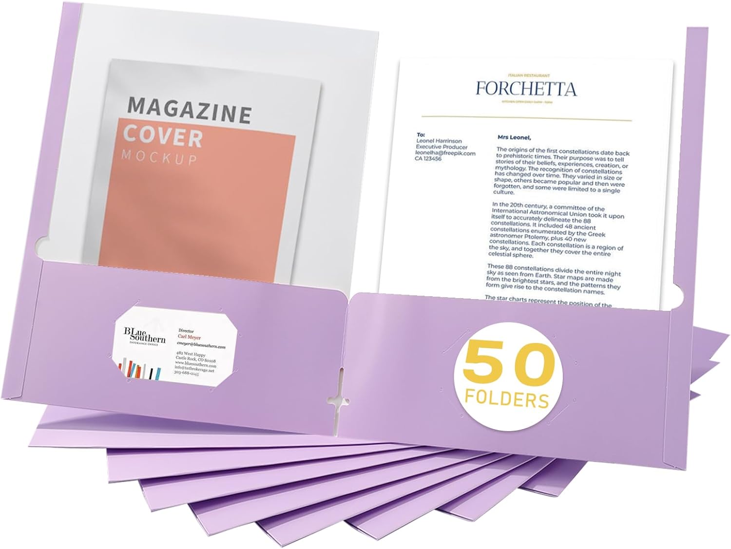 - PACKAGE INCLUDES: 50 packs purple file folders with 2 pocket folders and 2 business card slot, 100 plus Sheet Capacity, enough use for you, perfect for school, paperwork, office, business.