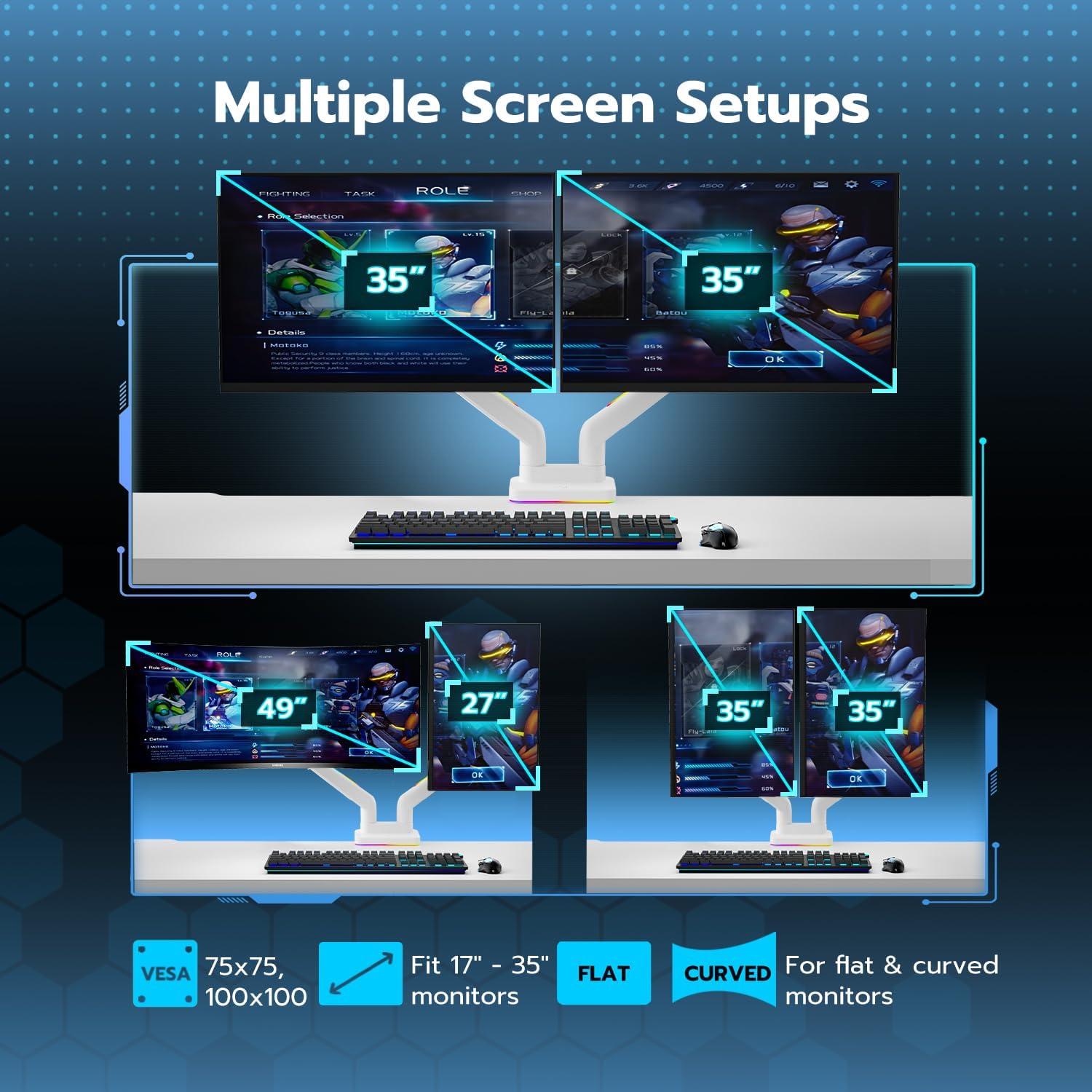 ARES WING Dual Monitor Mount for 17-35 Inch Ultrawide Heavy Duty Curved Screen, Computer Monitor Arm Desk Mount, Gas Spring Adjustable Dual Monitor Stand for Desk, White