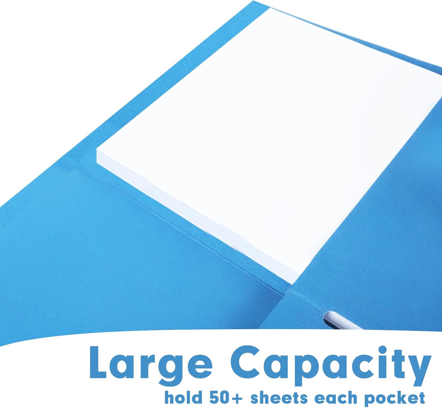- LARGE CAPACITY: Two pocket folders is made of thick and texture paper, not easy to break and deform. Holds 50+ sheets per pocket, providing ample space for your files, ideal for long-term use and storage