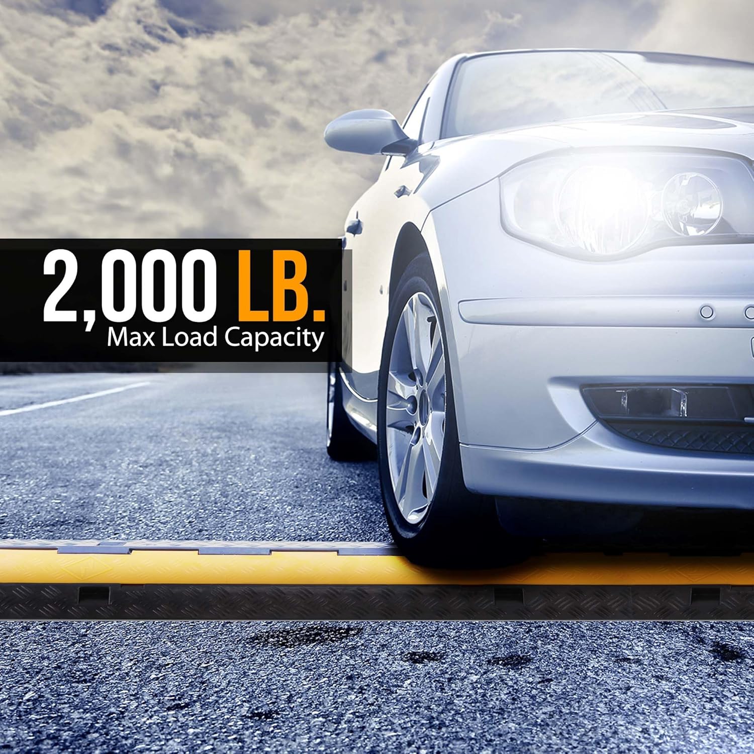 Pyle 2-Pack Heavy Duty Cable Ramp, Protective Cover with 2-Channel Design, 2000 lbs Load Capacity, Flip-Open Top, Non-Slip Surface, High Visibility Yellow, Suitable for Indoor and Outdoor Use