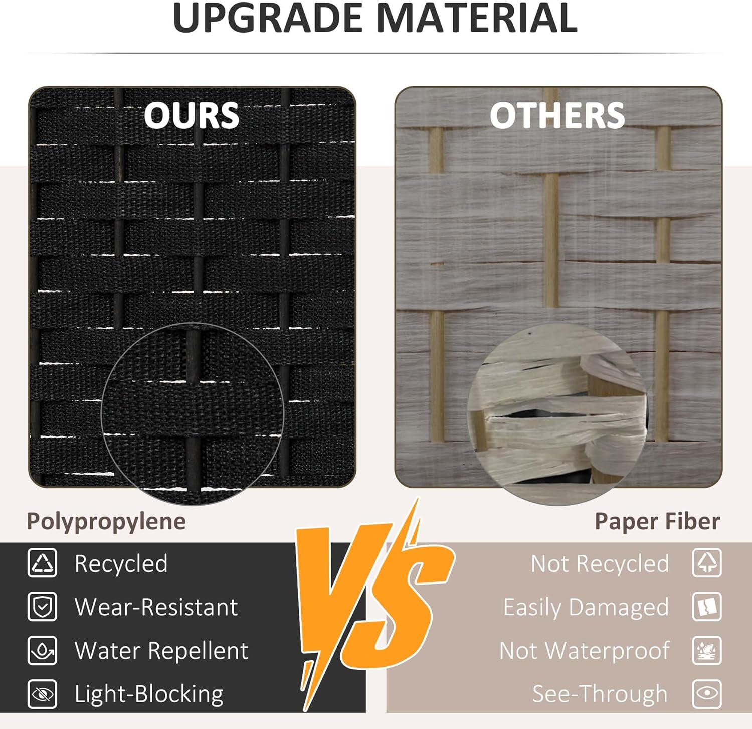 - Quality Material: Our room divider wall is made from a pine wood frame for sturdiness and polypropylene webbing for superior privacy and durability. It outperforms traditional paper fiber panels and their issues with separation and gaps.