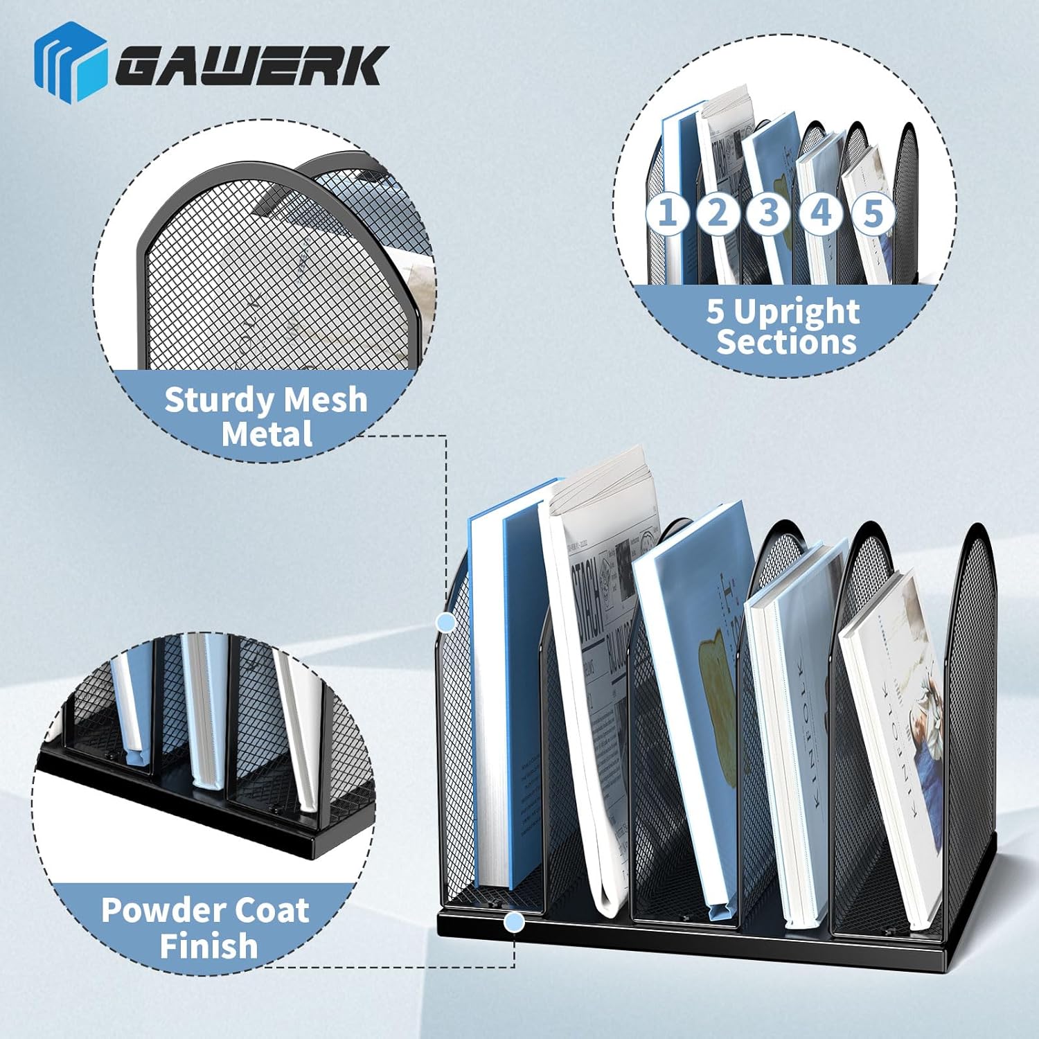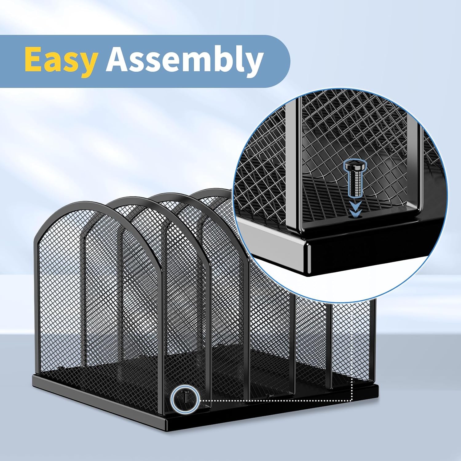 5-Section Vertical Desktop Organizer, 5-Section Mesh File Folder Stand Sorter for Office Home Classroom Organization (2, Black)