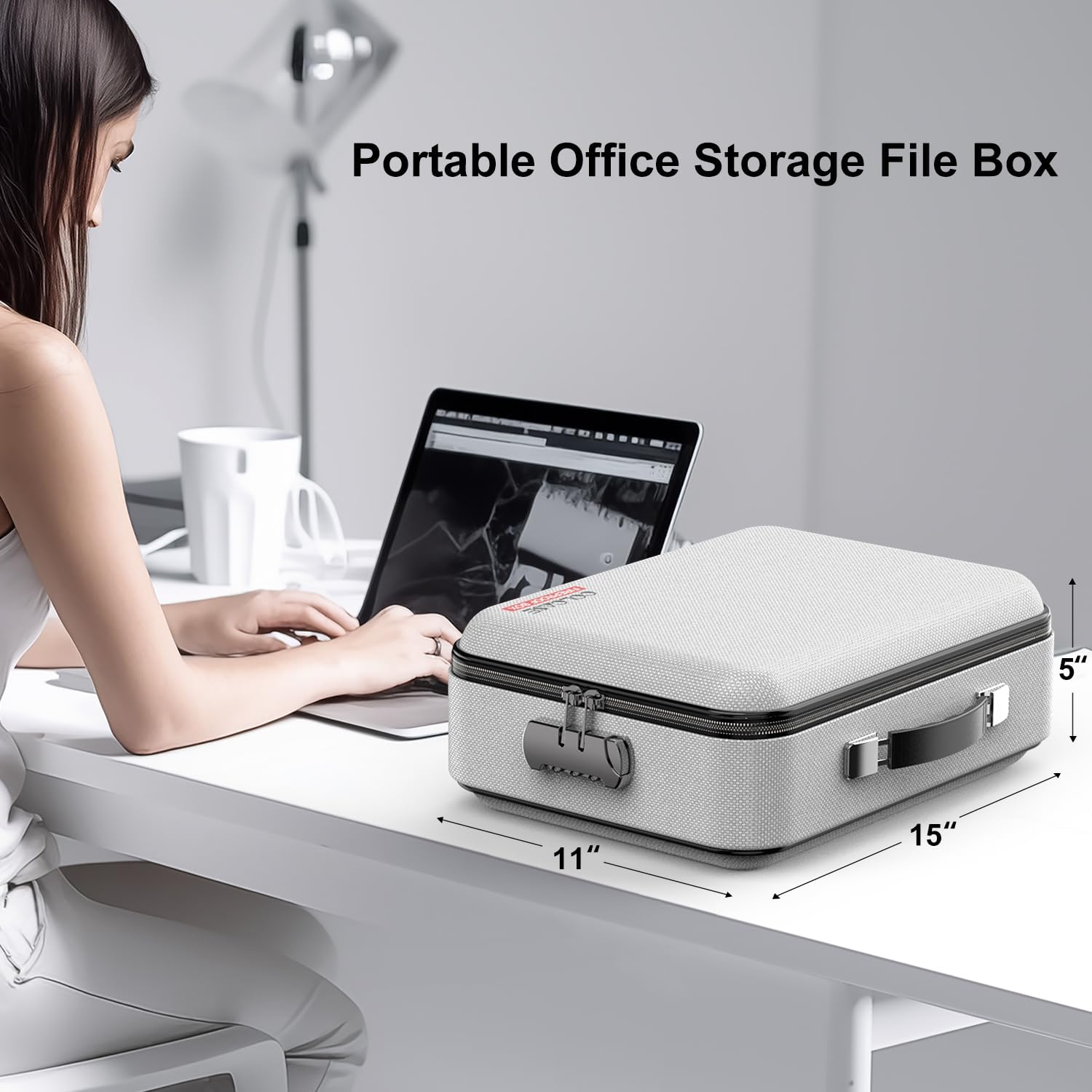 Fireproof Document Box, Hard Case Fireproof File Organizer with Lock Hard-Shell Design Fireproof Water Resistant Safe Box for Important Documents Certificates Laptop Passports Gray