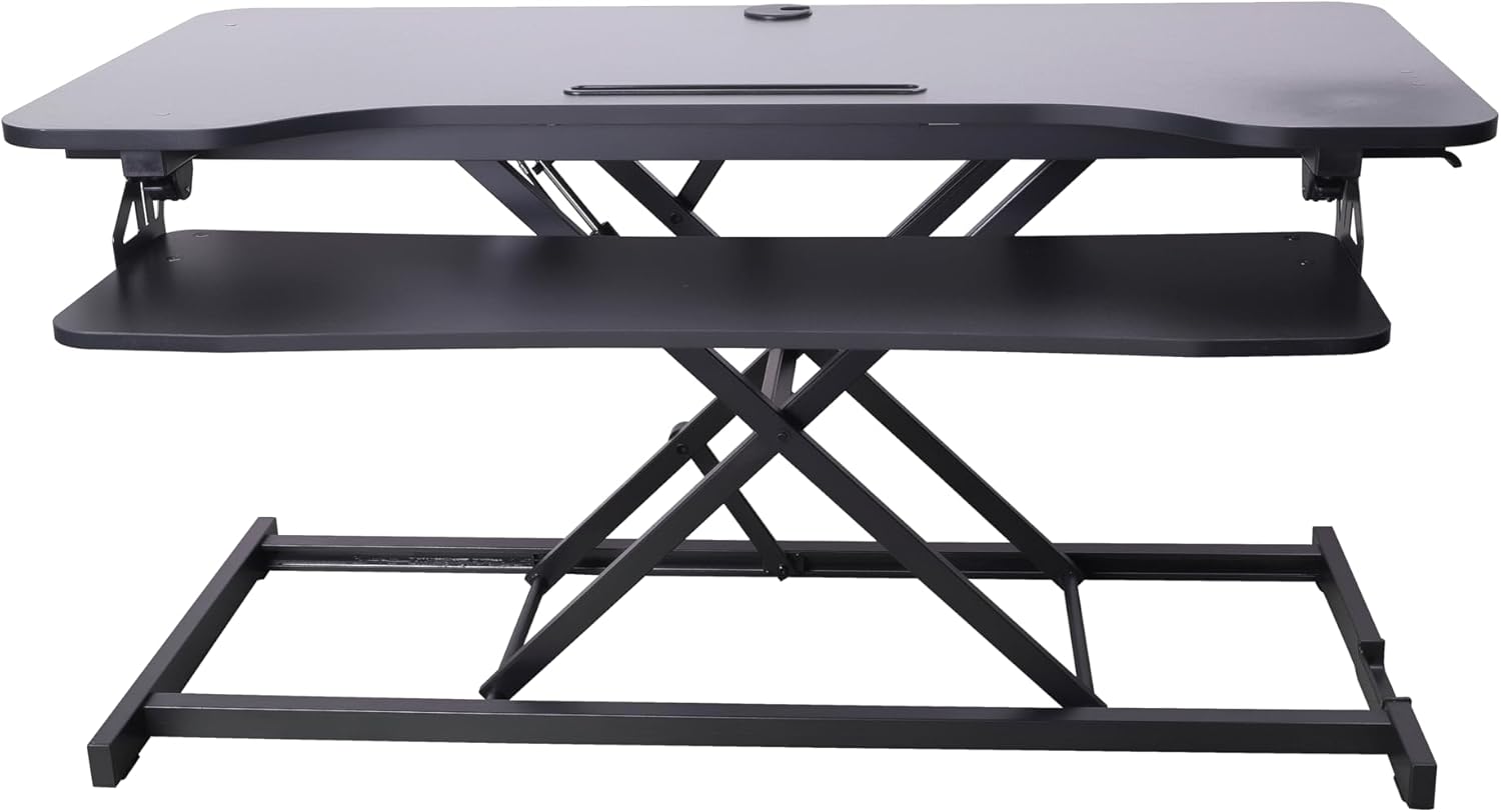 Rocelco 43" Height Adjustable Standing Desk Converter with Dual Monitor Arm Mount - Tall Stand Up Tabletop Riser and Tablet Slot - Computer Workstation - Deep Keyboard Tray - Black (R VADRB-43-DM2)